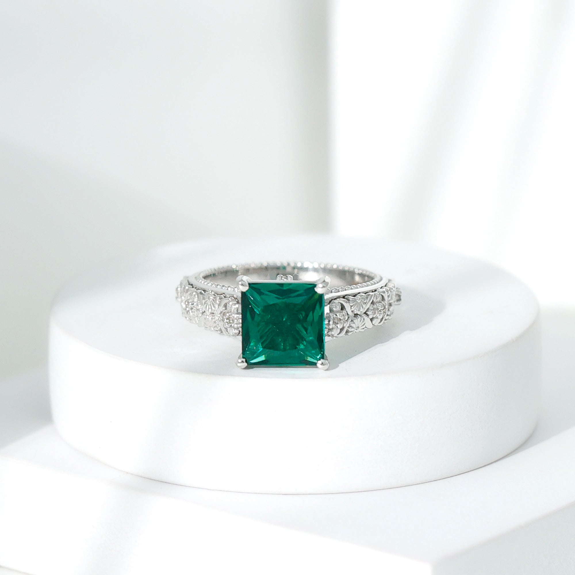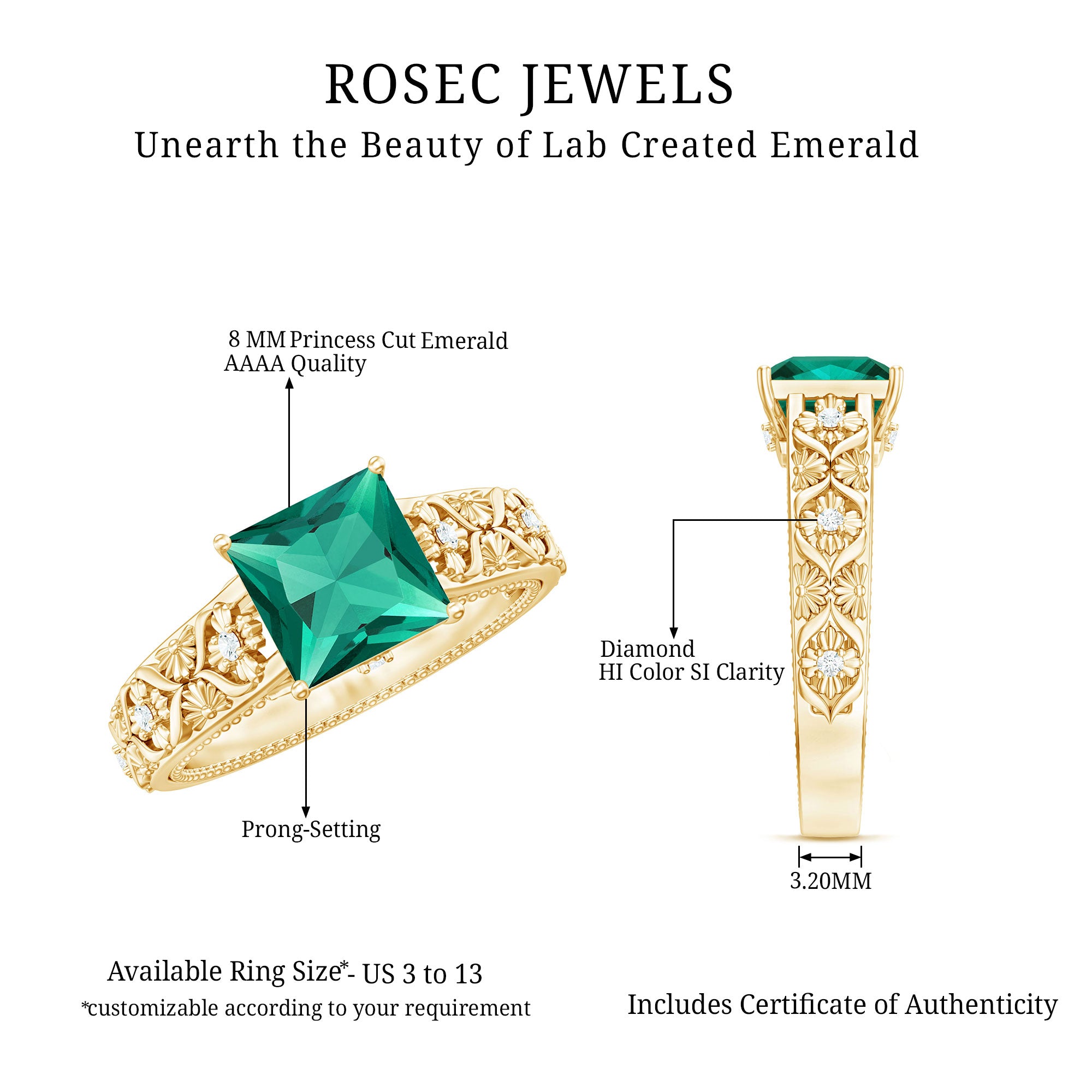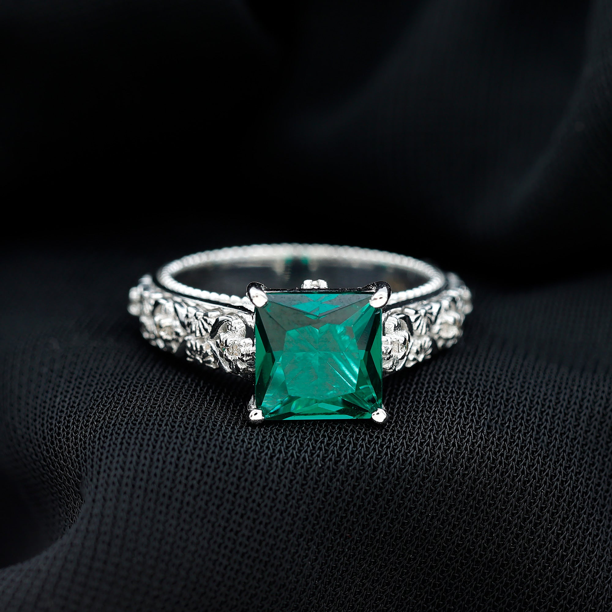 2.50 CT Princess Cut Created Emerald Solitaire Ring with Diamond