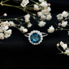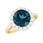 8mm Round London Blue Topaz Classic Engagement Ring with Moissanite Halo