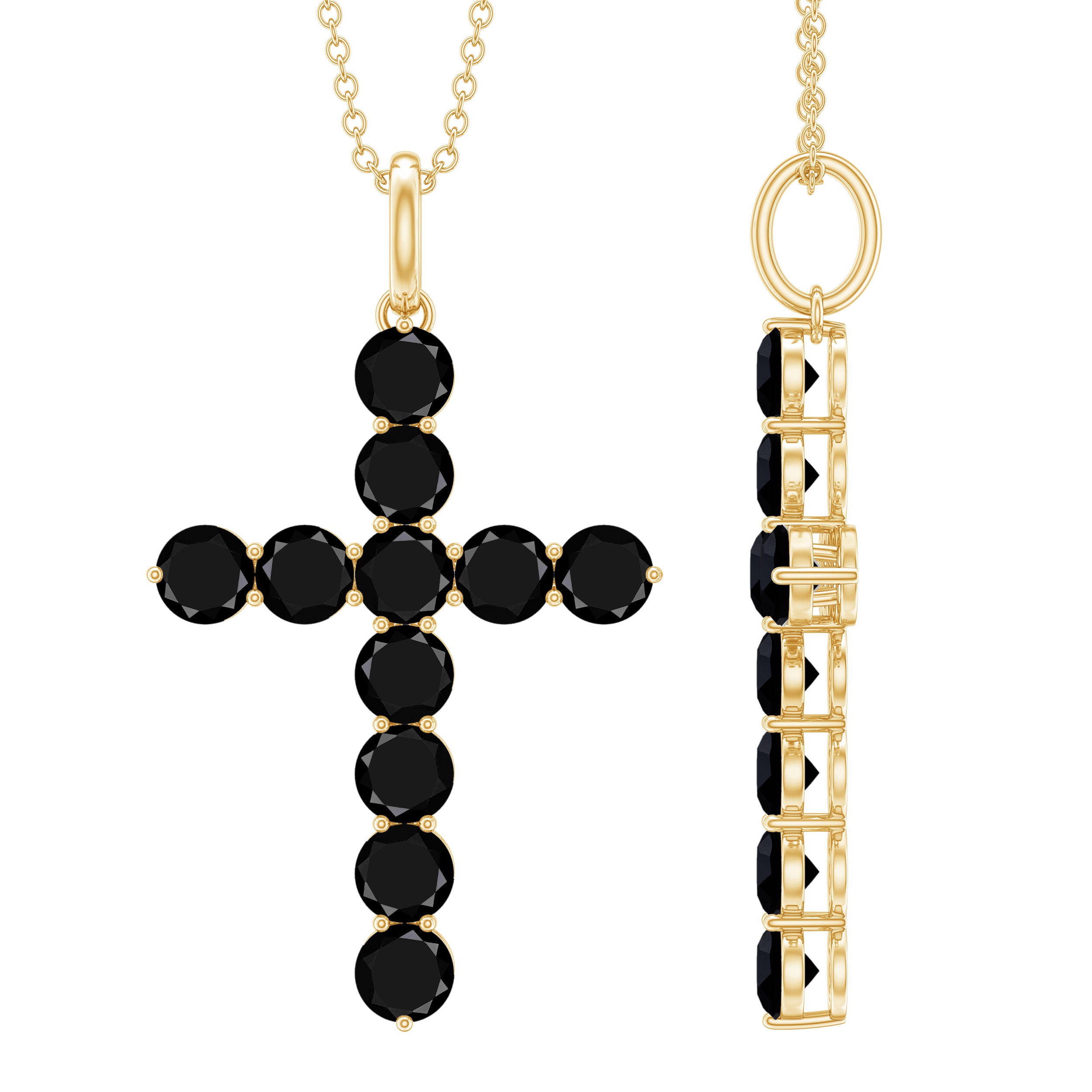 This Cross Pendant is a symbol of faith and devotion that she can wear every day with pride. The pendant features a graceful cross, skillfully crafted from Gold, that shimmers with an elegant Black Onyx gemstone in a secure Prong Setting. The timeless and classic design of this pendant ensures that it will remain a cherished accessory for years to come. This beautiful Cross Pendant is a perfect way to express ones faith and devotion, and it makes for a thoughtful and meaningful gift for a loved one.