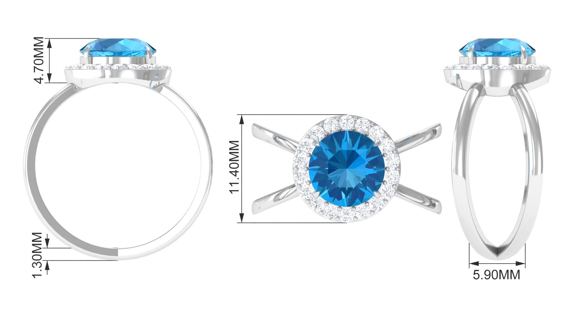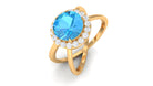 2.50 CT Swiss Blue Topaz Solitaire and Diamond Split Shank Ring