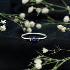 2.5X5 MM Baguette Cut Blue Sapphire Solitaire Ring in 4 Prong Diagonal Setting