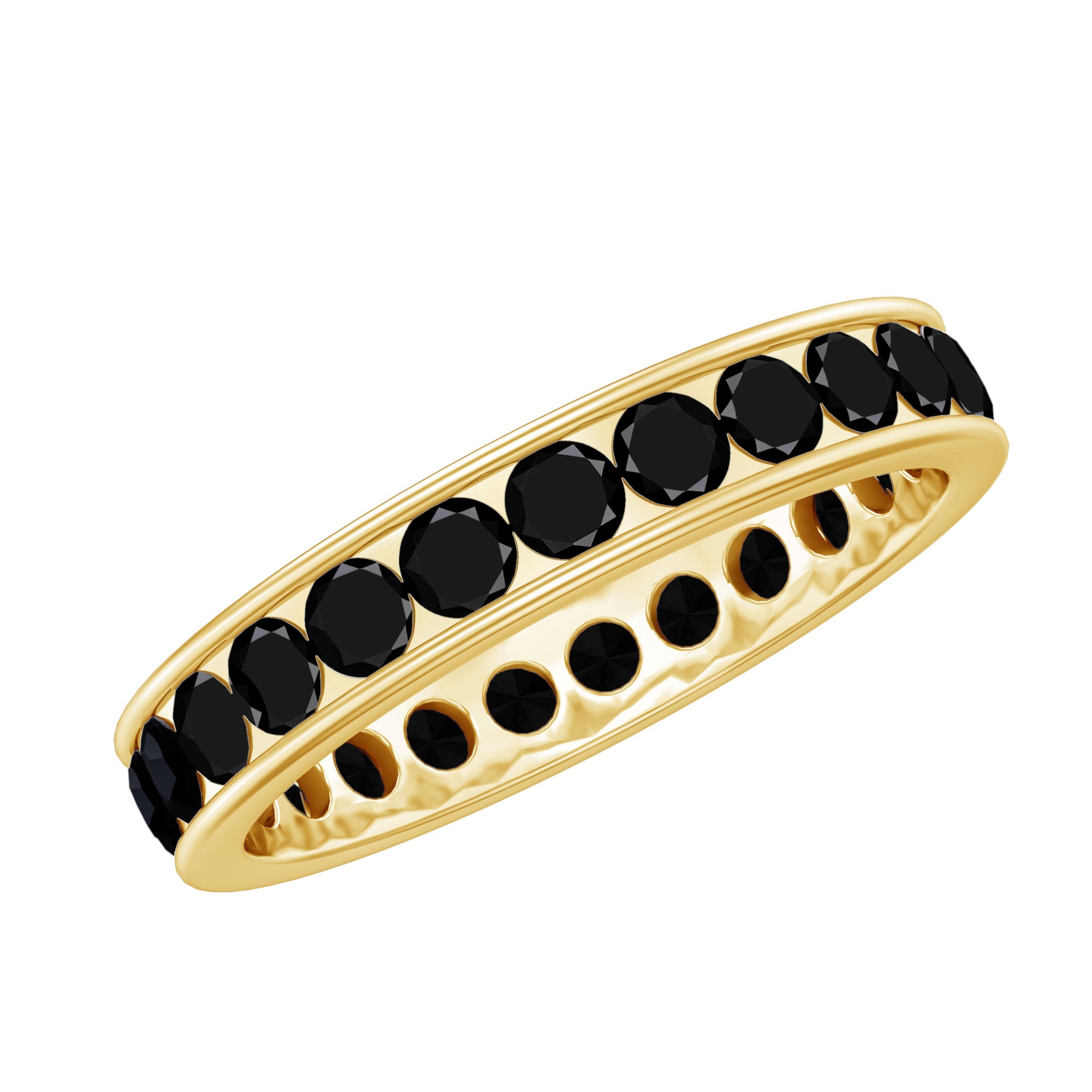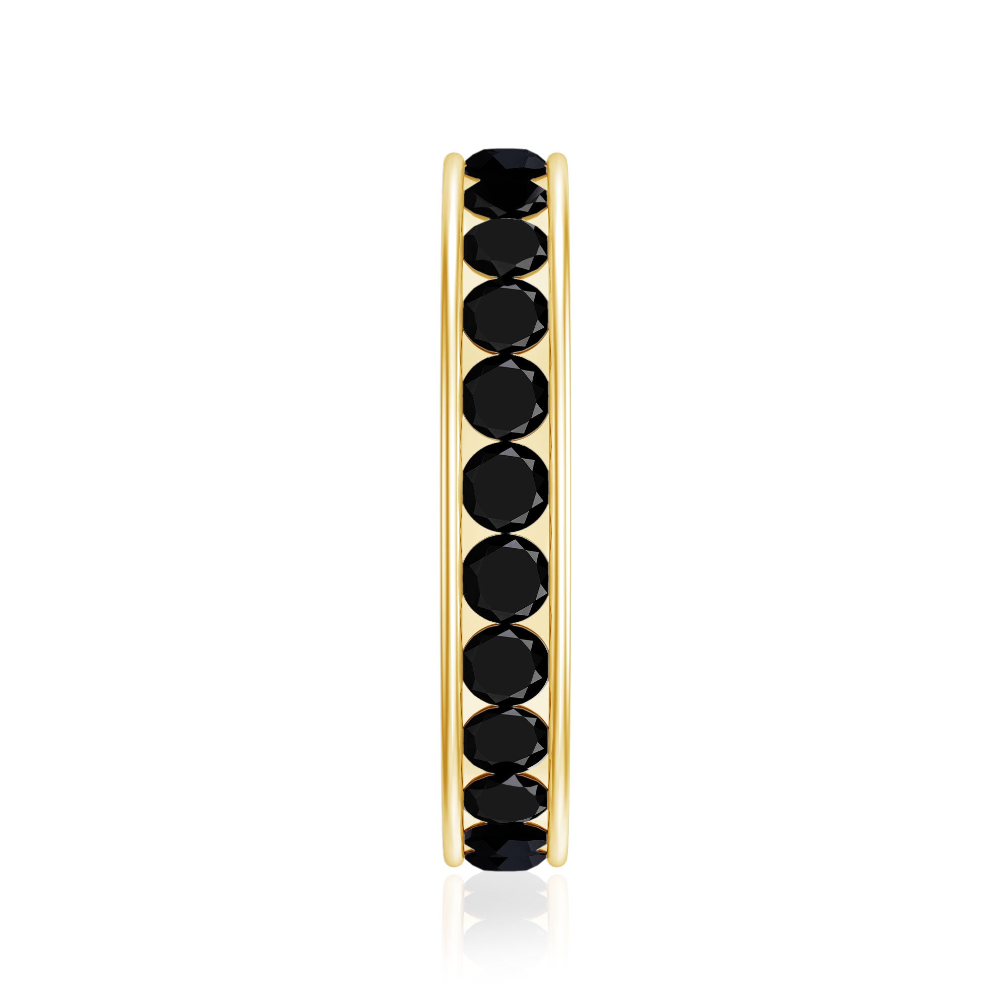 The Channel Set Black Spinel Eternity Ring is designed for those who prefer a strong, continuous aesthetic with a modern edge. The full eternity style creates an uninterrupted circle of stones, offering a balanced and consistent appearance.