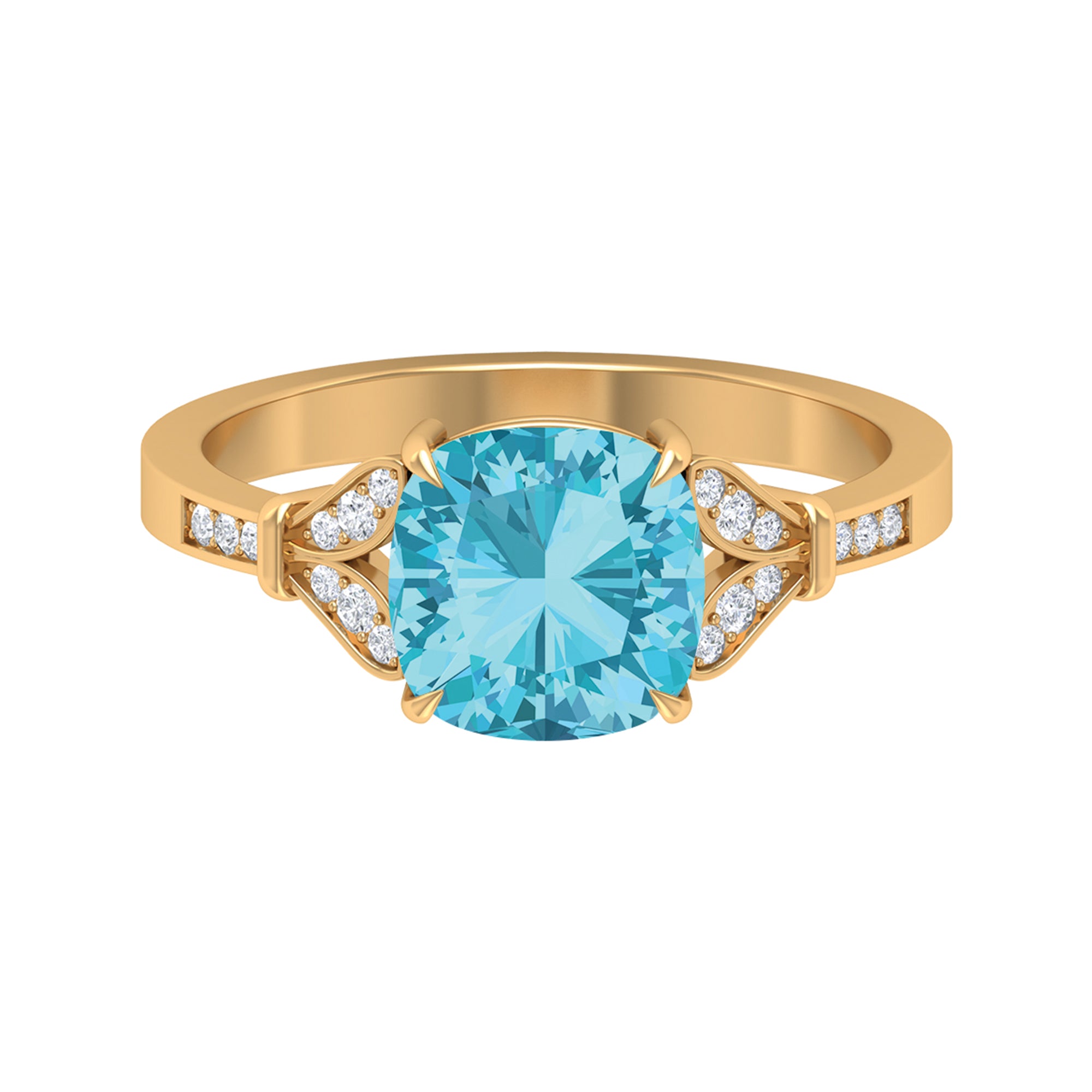 2.75 CT Cushion Cut Swiss Blue Topaz Solitaire with Diamond Side Stone Ring