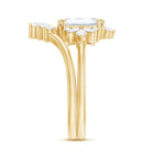 Make your special day unforgettable with this breathtaking Moissanite Bridal Ring Set, thoughtfully designed to add timeless beauty and graceful sparkle to your look. At the heart of this 3 Piece Bridal Set is a stunning 6X8 MM Oval Cut Moissanite, securely set in prongs with side stones, radiating brilliance as a captivating solitaire. Framing the center ring are two curved wedding band guards, delicately adorned with a mix of marquise and round moissanite stones. These sparkling enhancers embrace the solitaire from both sides, creating a bold yet elegant silhouette that reflects your unique style and commitment. Crafted with precision and artistry, this Stackable Bridal Set for Women blends the charm of tradition with a modern touch. The sleek, polished metal band complements the intricate stone arrangement, offering versatility, you can wear all three rings together for a striking bridal look or separate them for a more subtle, everyday style. This Engagement Ring and Wedding Band Set exudes sophistication and romantic charm. Presented in a beautiful jewelry box and available in a range of sizes, this Moissanite Wedding Ring Set promises not only sparkle and elegance but also durability and ethical beauty that will be treasured for a lifetime.