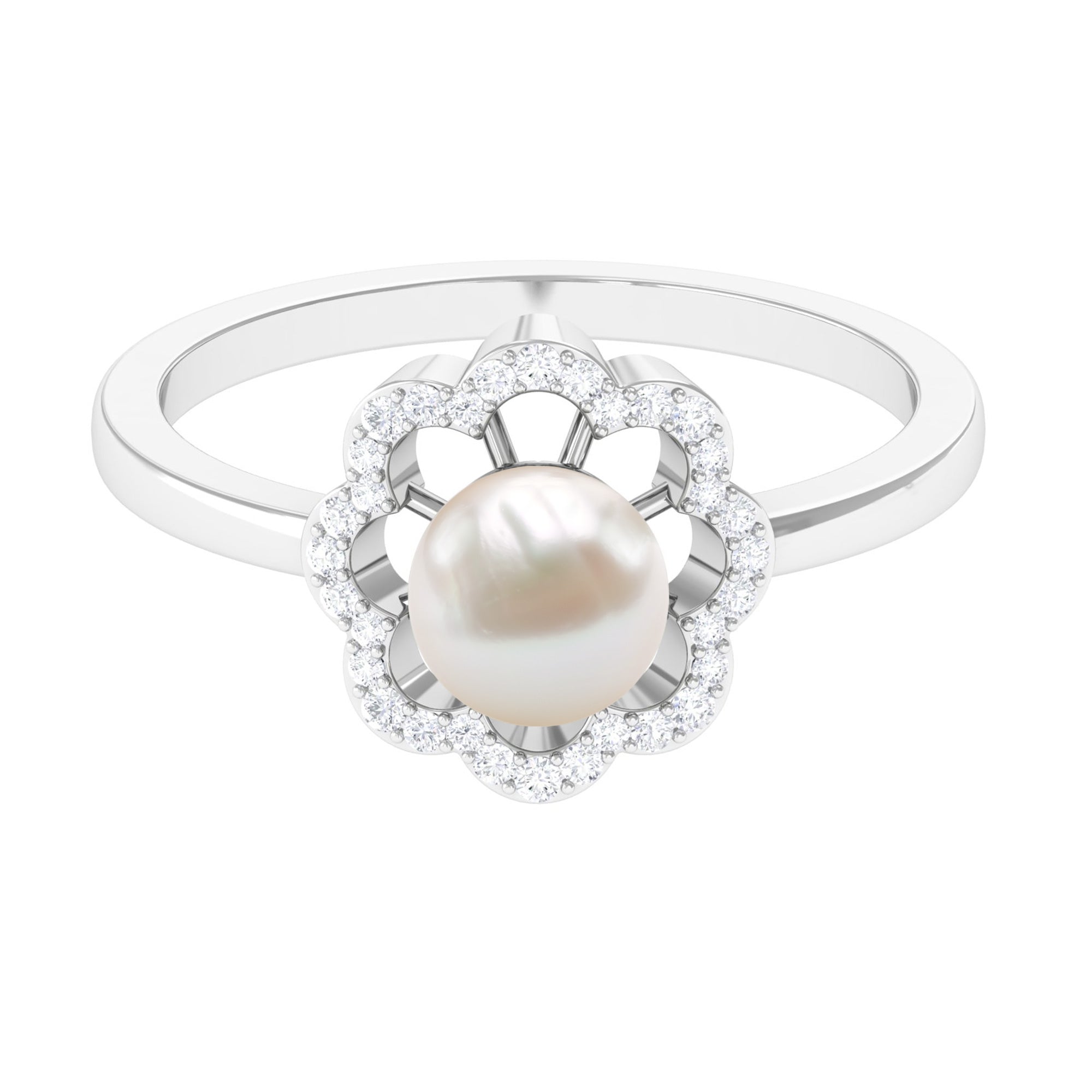 2.75 CT Freshwater Pearl Engagement Ring with Diamond Floral Halo