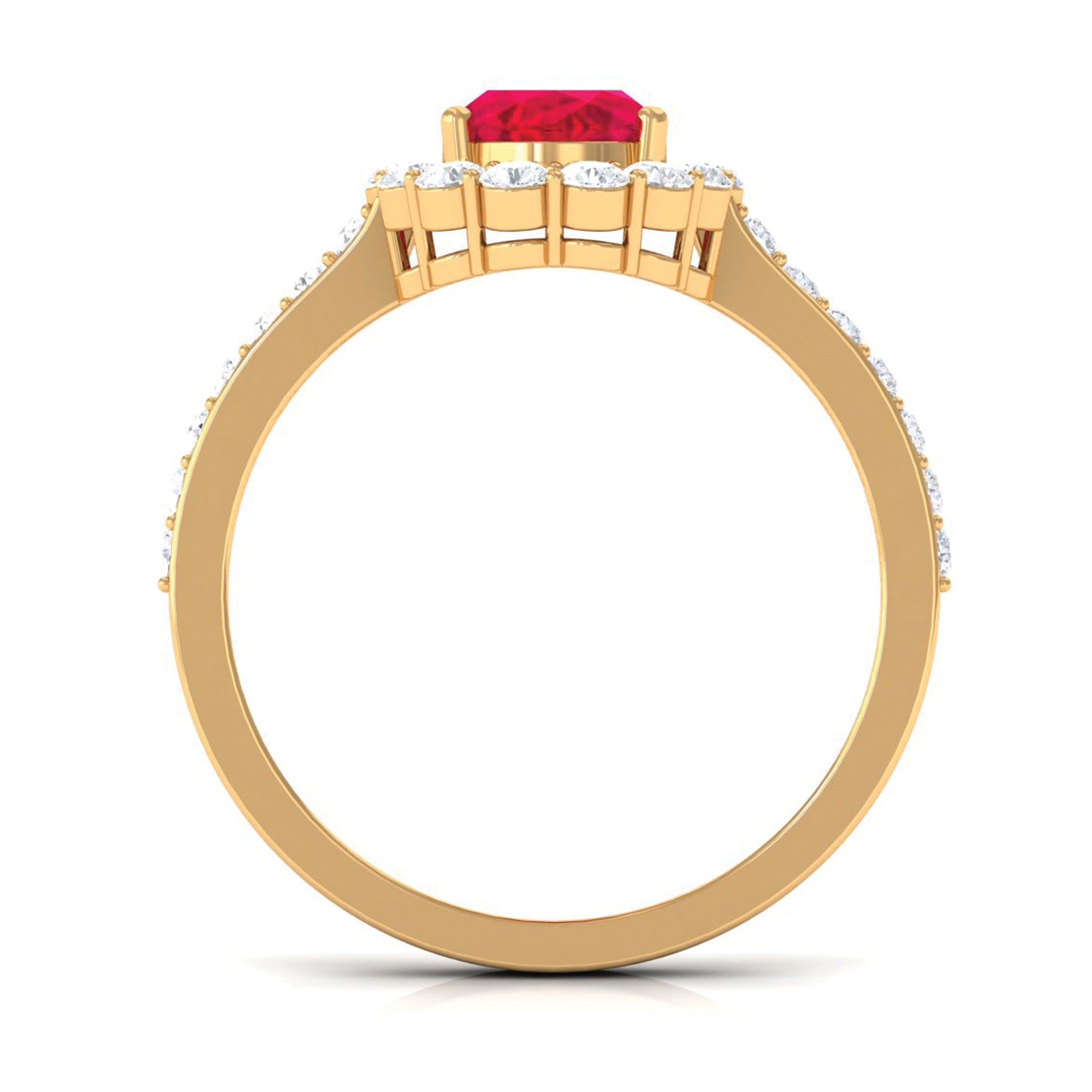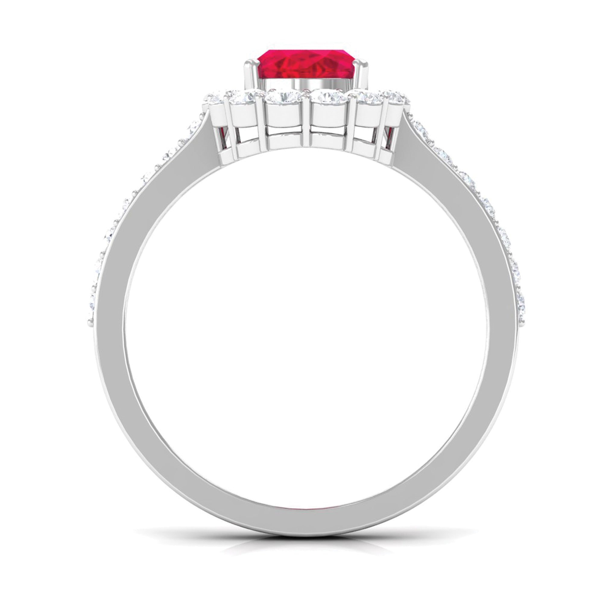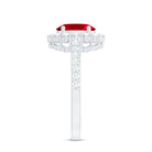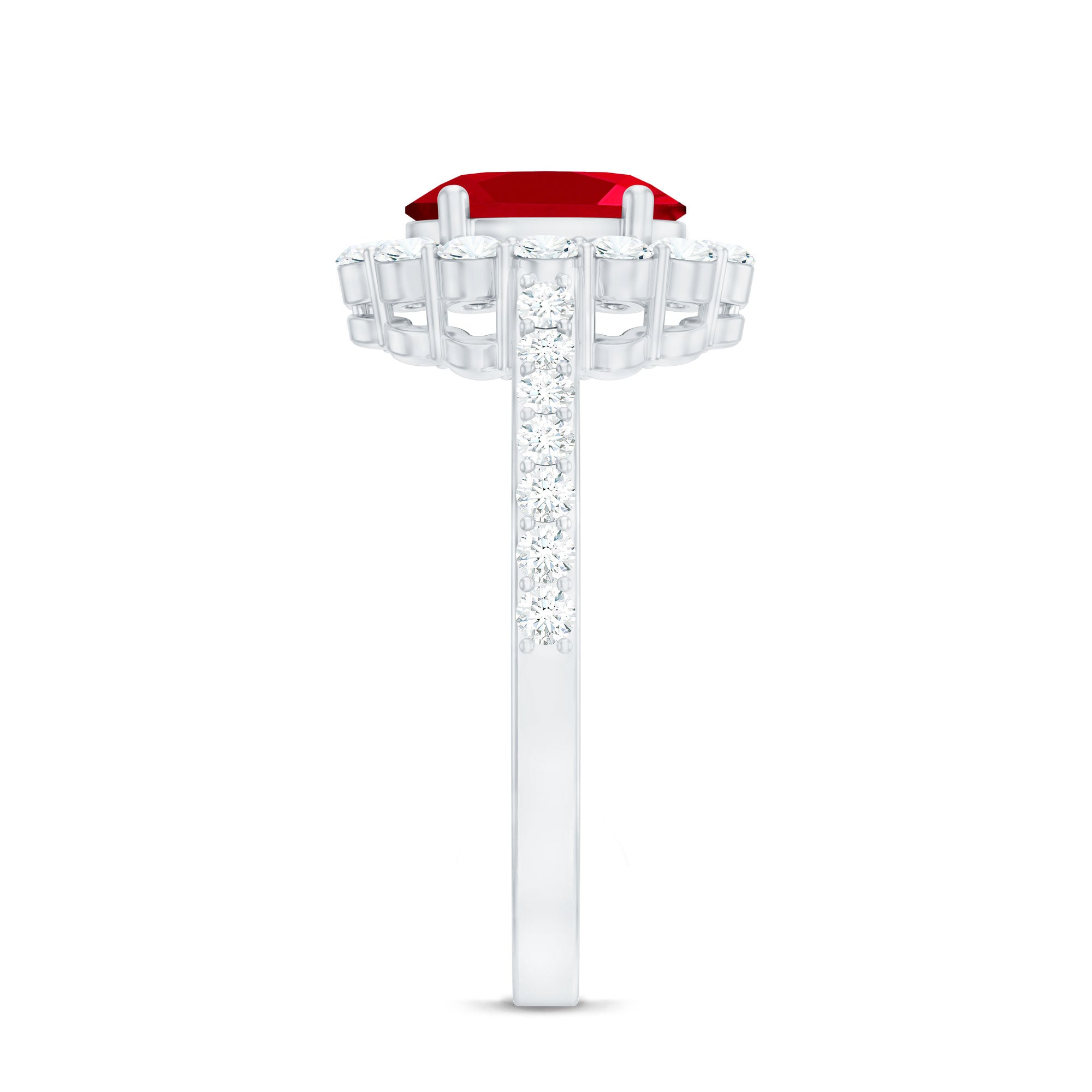 2.75 CT Oval Cut Created Ruby Ring with Moissanite Halo