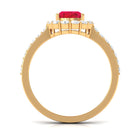 Encased with Oval Shape Lab Created Ruby as solitaire and Round Shape Moissanite gemstones in the halo and side stone setting, it is set in Gold and makes a beautiful piece of jewelry.