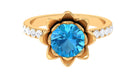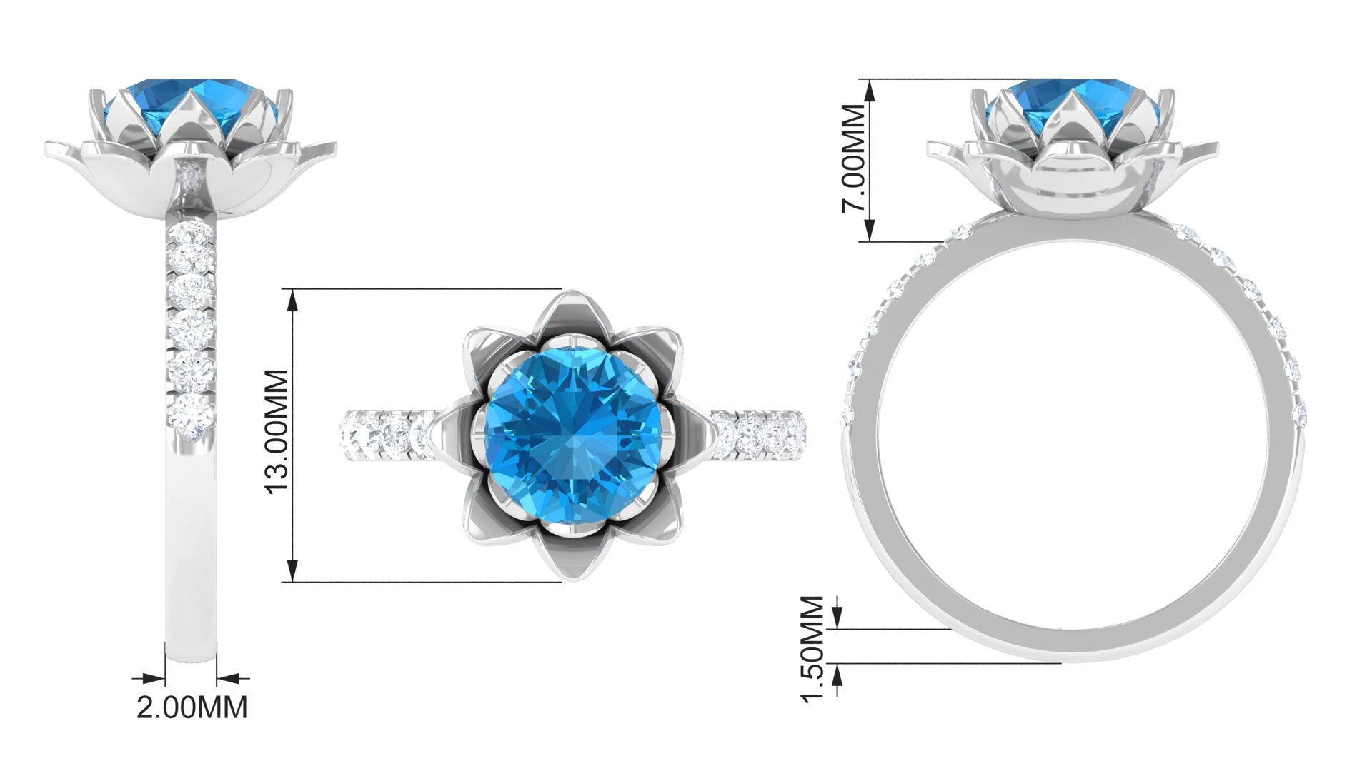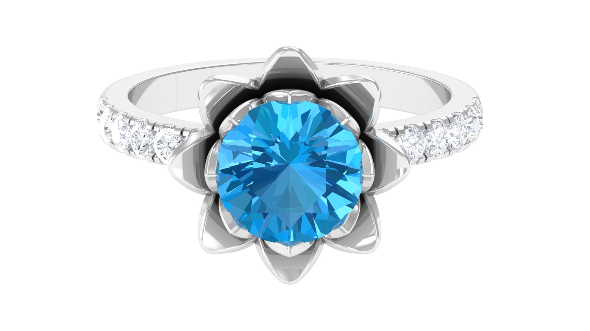 2.75 CT Swiss Blue Topaz Floral Ring with Moissanite Accent