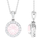 2 Carat Rose Quartz and Diamond Halo Necklace
