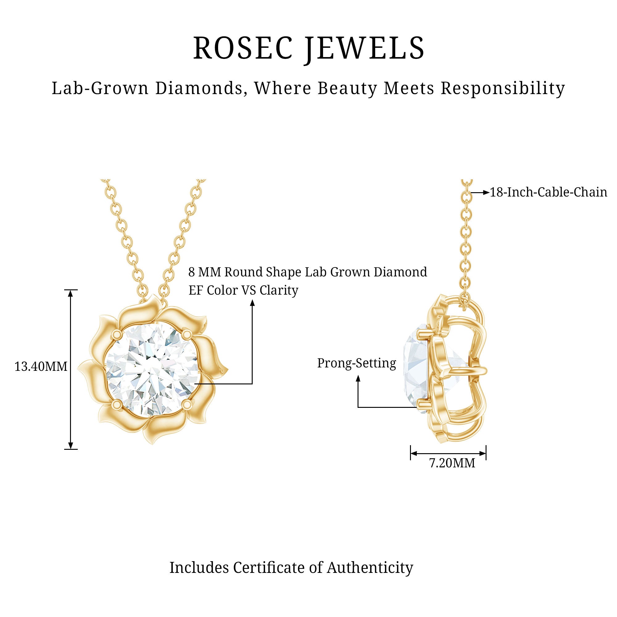 2 Carat Solitaire Lab Grown Diamond Flower Necklace