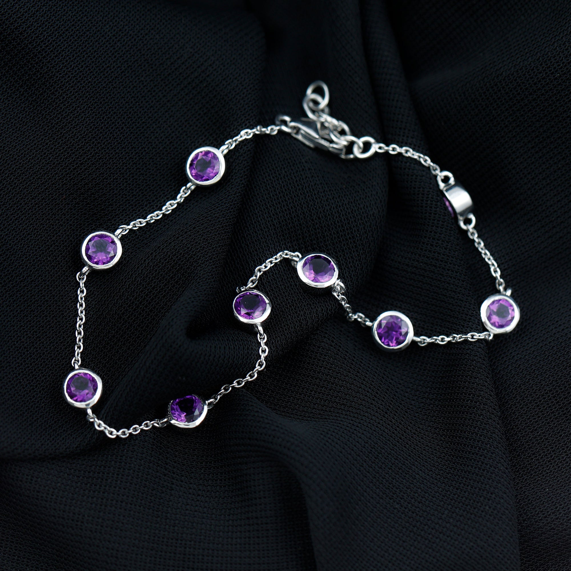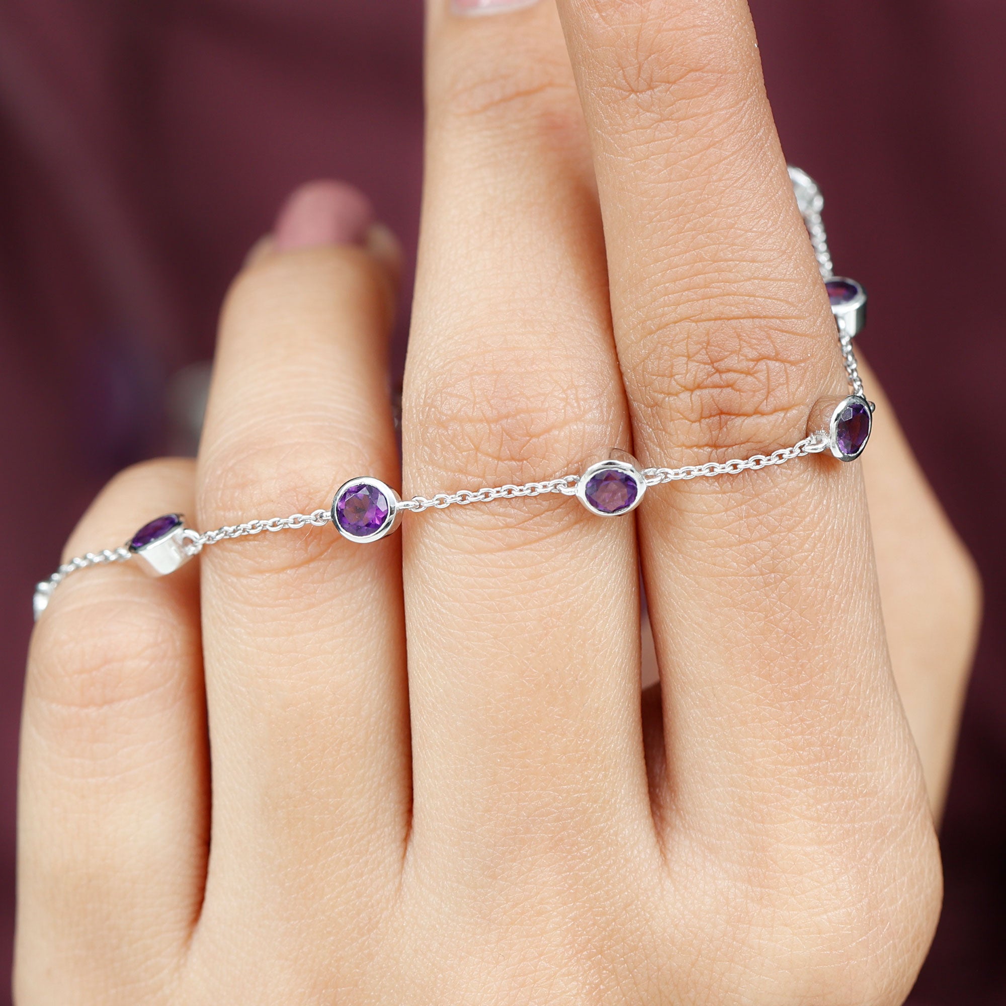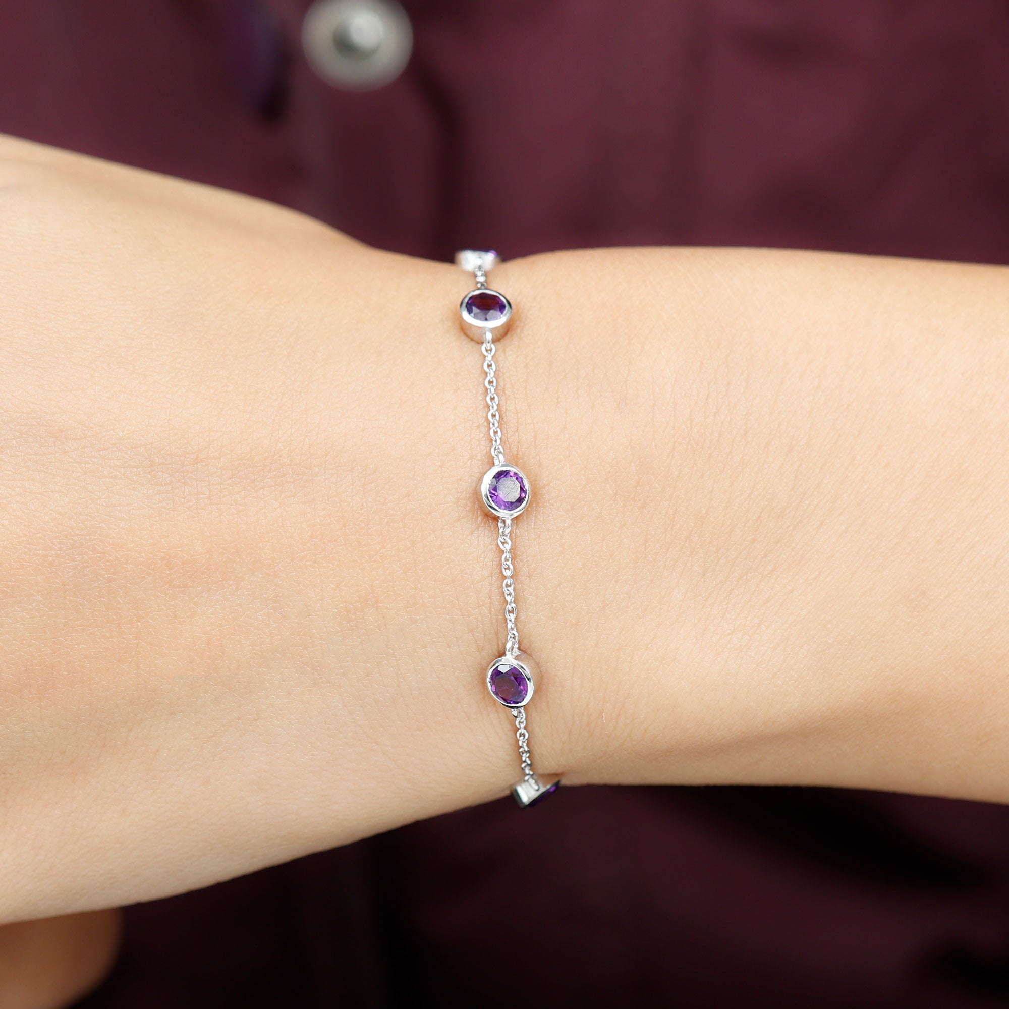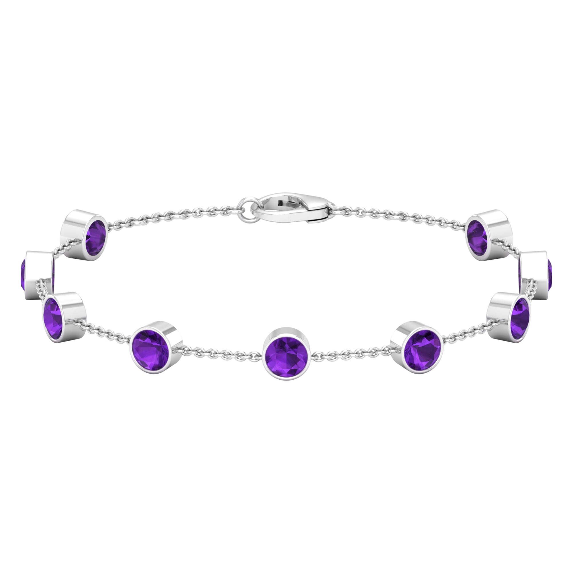 2 CT Bezel Set Amethyst Station Chain Bracelet