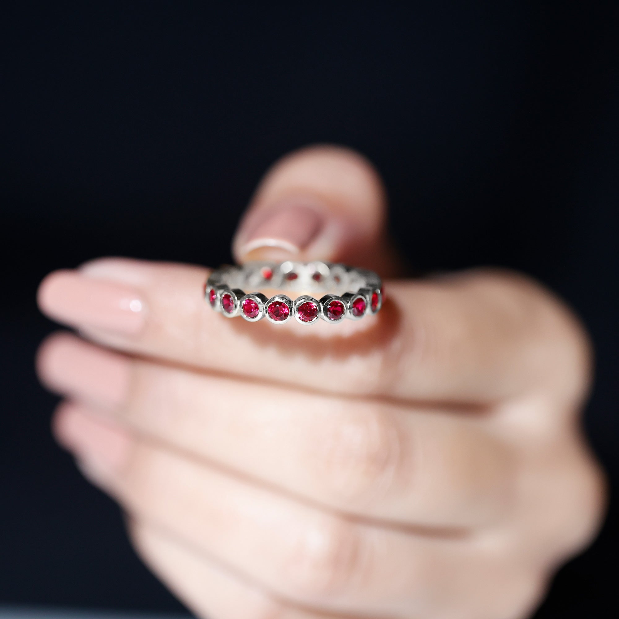 2 CT Bezel Set Round Shape Created Ruby Eternity Ring