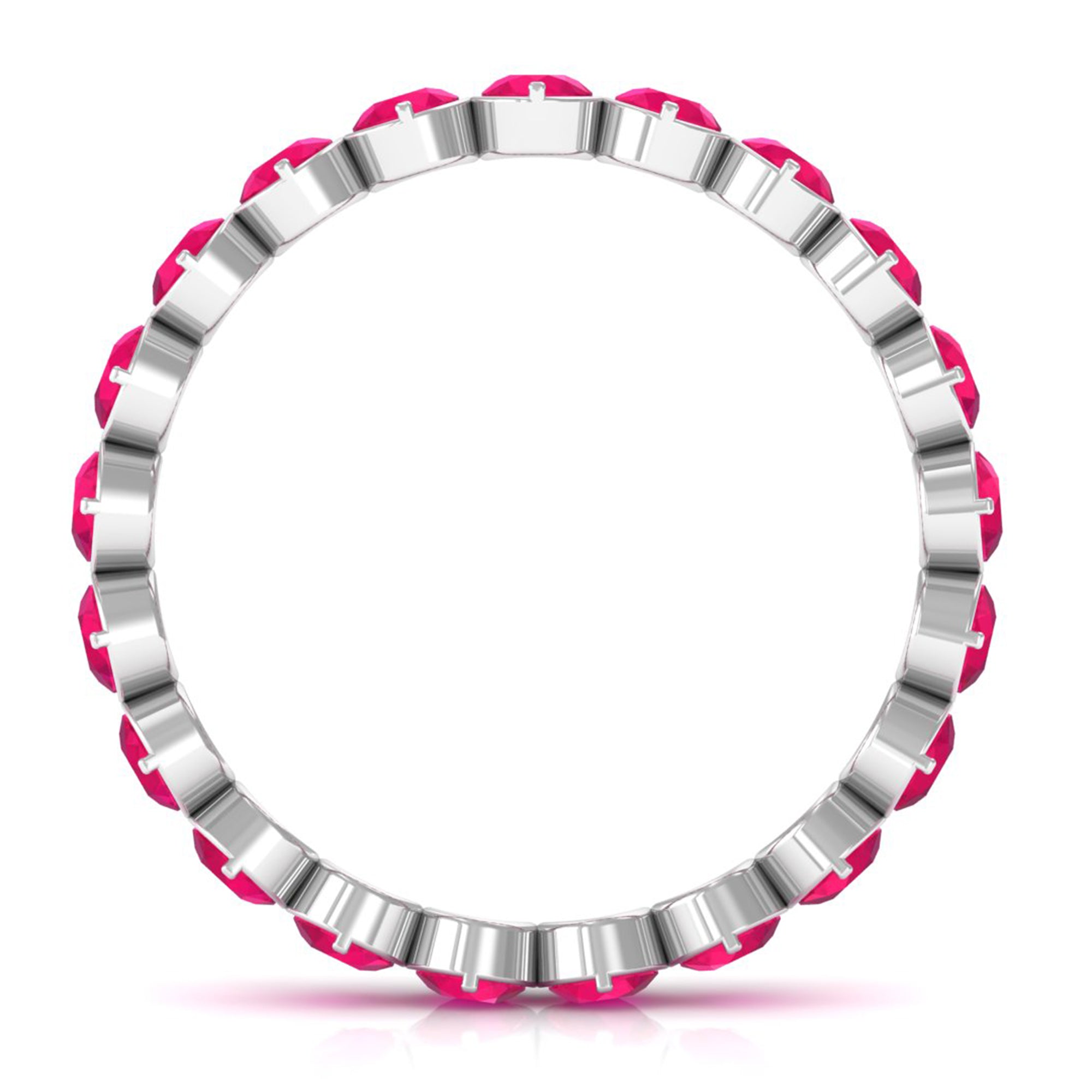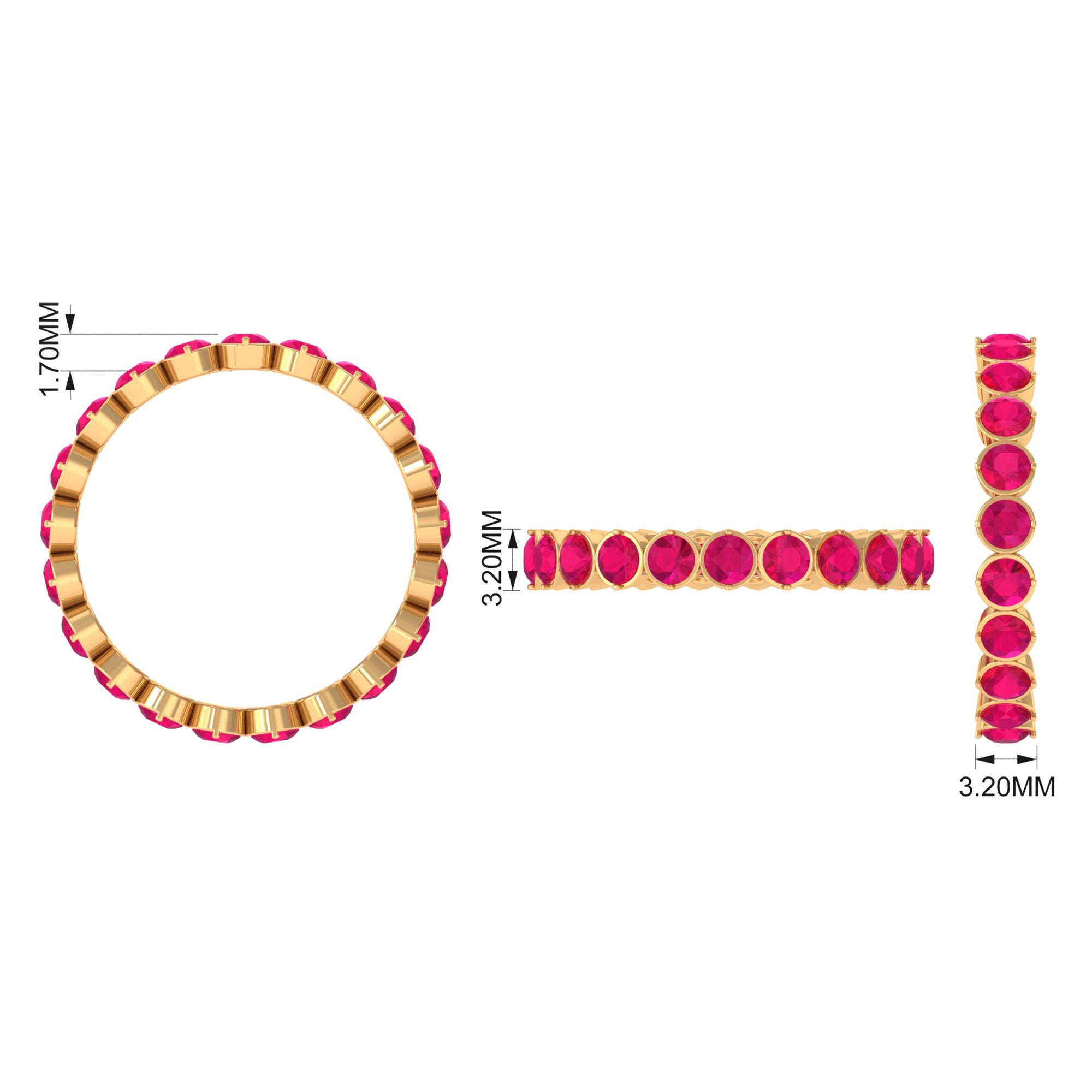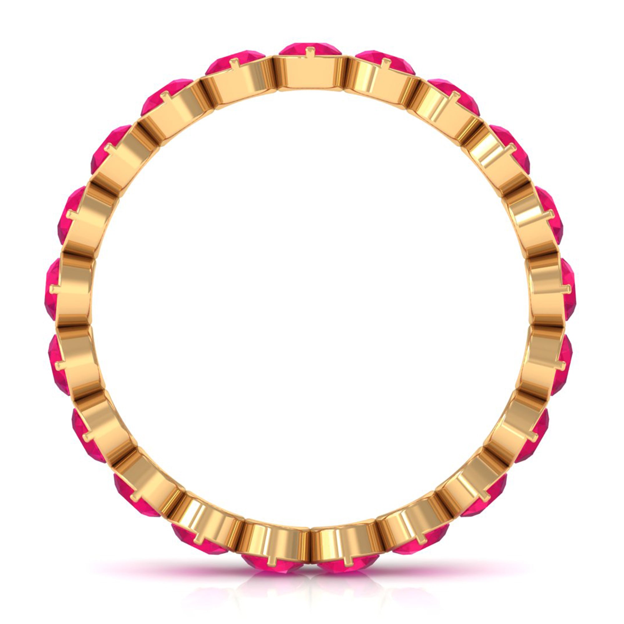 This Ruby Ring is unique and a beautiful jewelry for your loved ones. It features with Round Cut Ruby in full eternity pattern in Bezel Setting on Eternity Ring. This Full Eternity Ring is crafted in Solid Gold. Either go alone or stack it with other rings, in both the ways it will look flawless.
