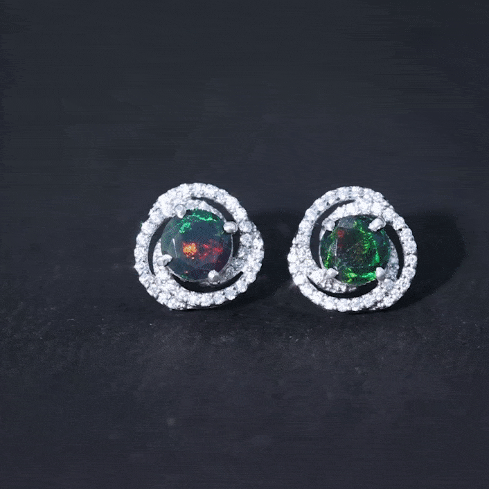 2 CT Black Opal Swirl Stud Earrings with Certificate