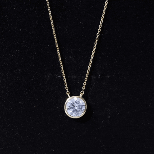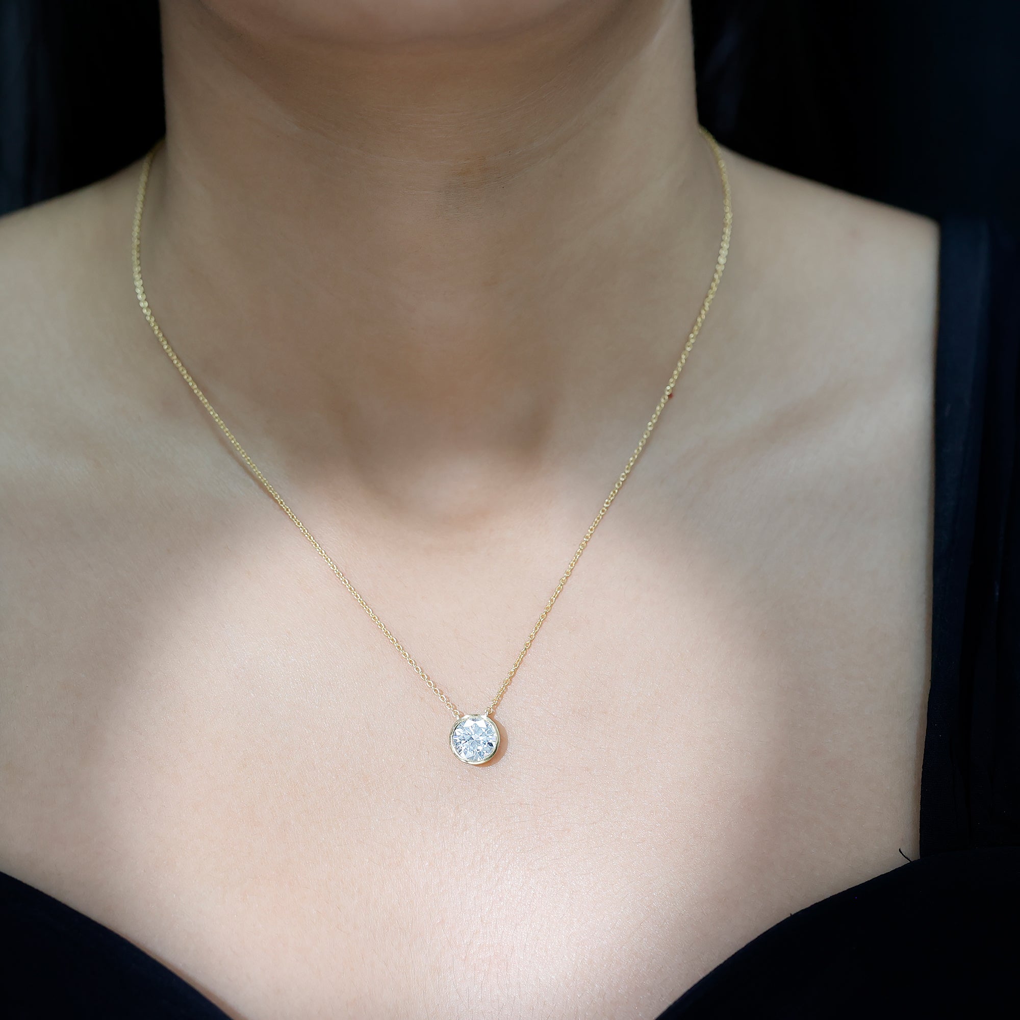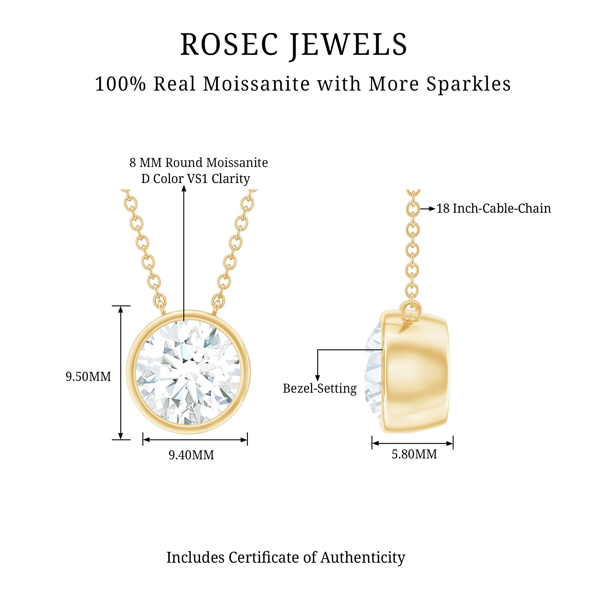 Enhance the significance of your special occasion with this exquisite Solitaire Necklace featuring a Round-Shaped Moissanite in a Bezel Setting. The Moissanite necklace boasts a minimalist design and is expertly crafted in solid gold.