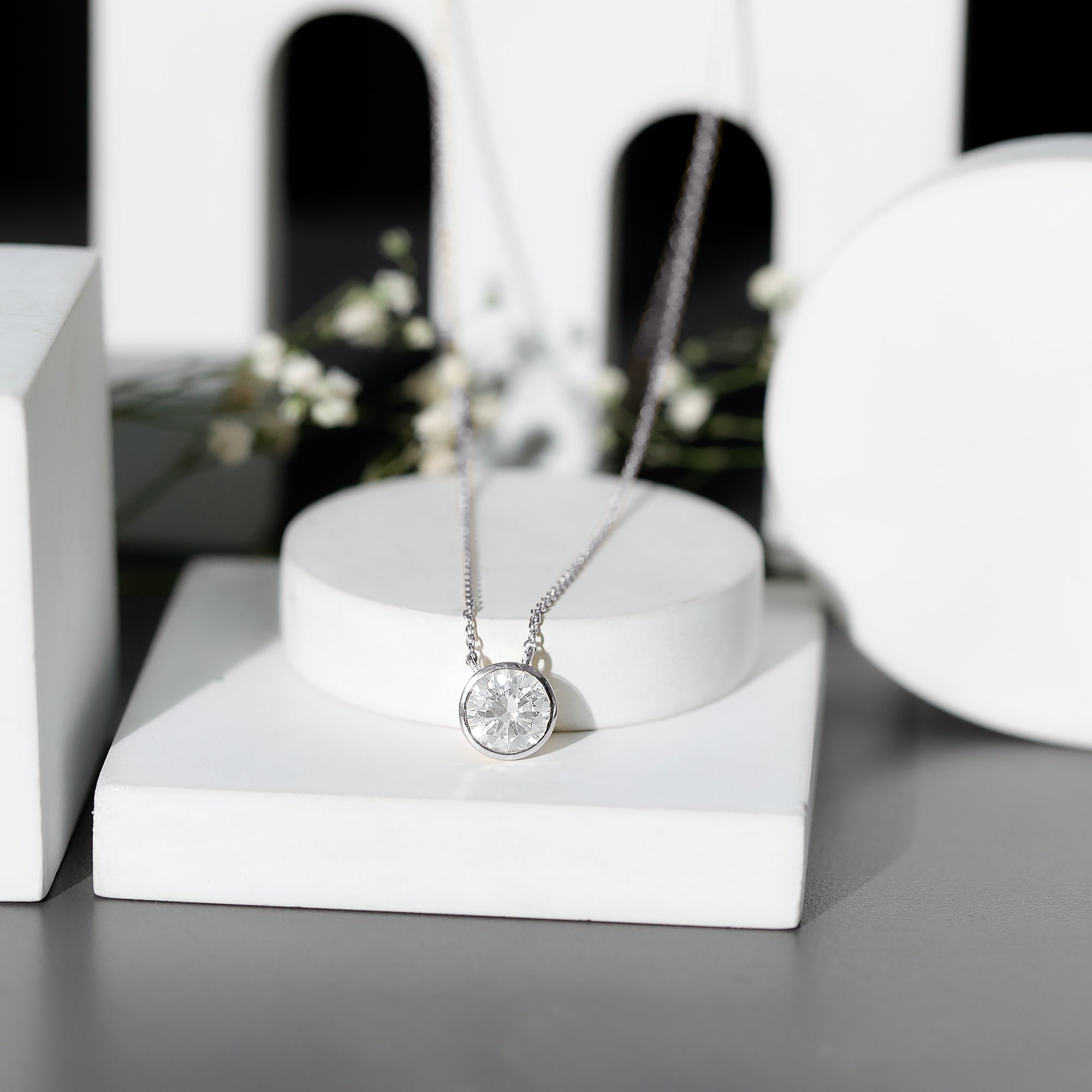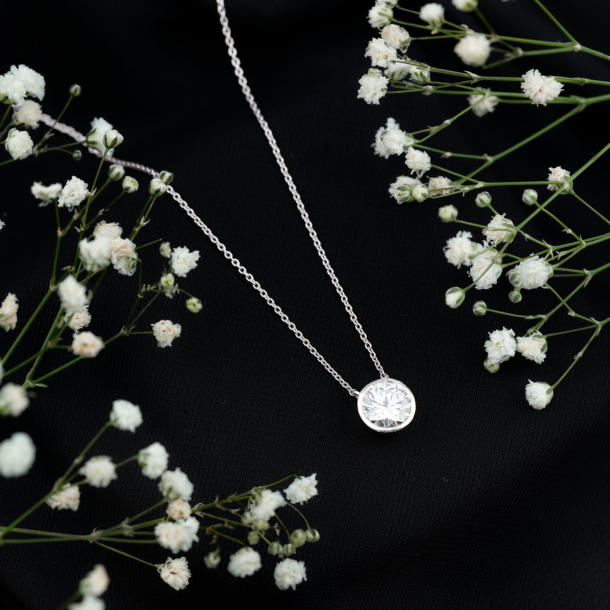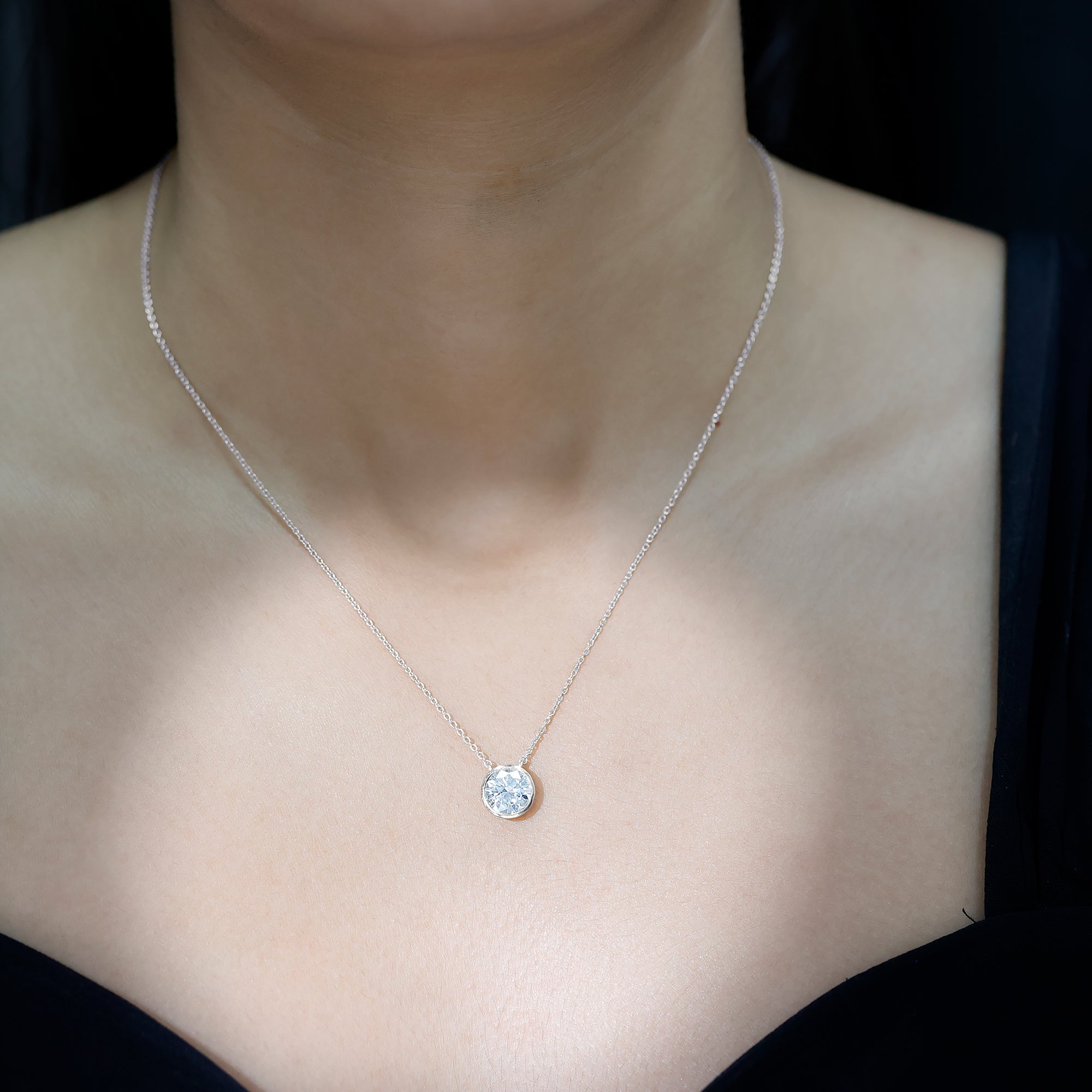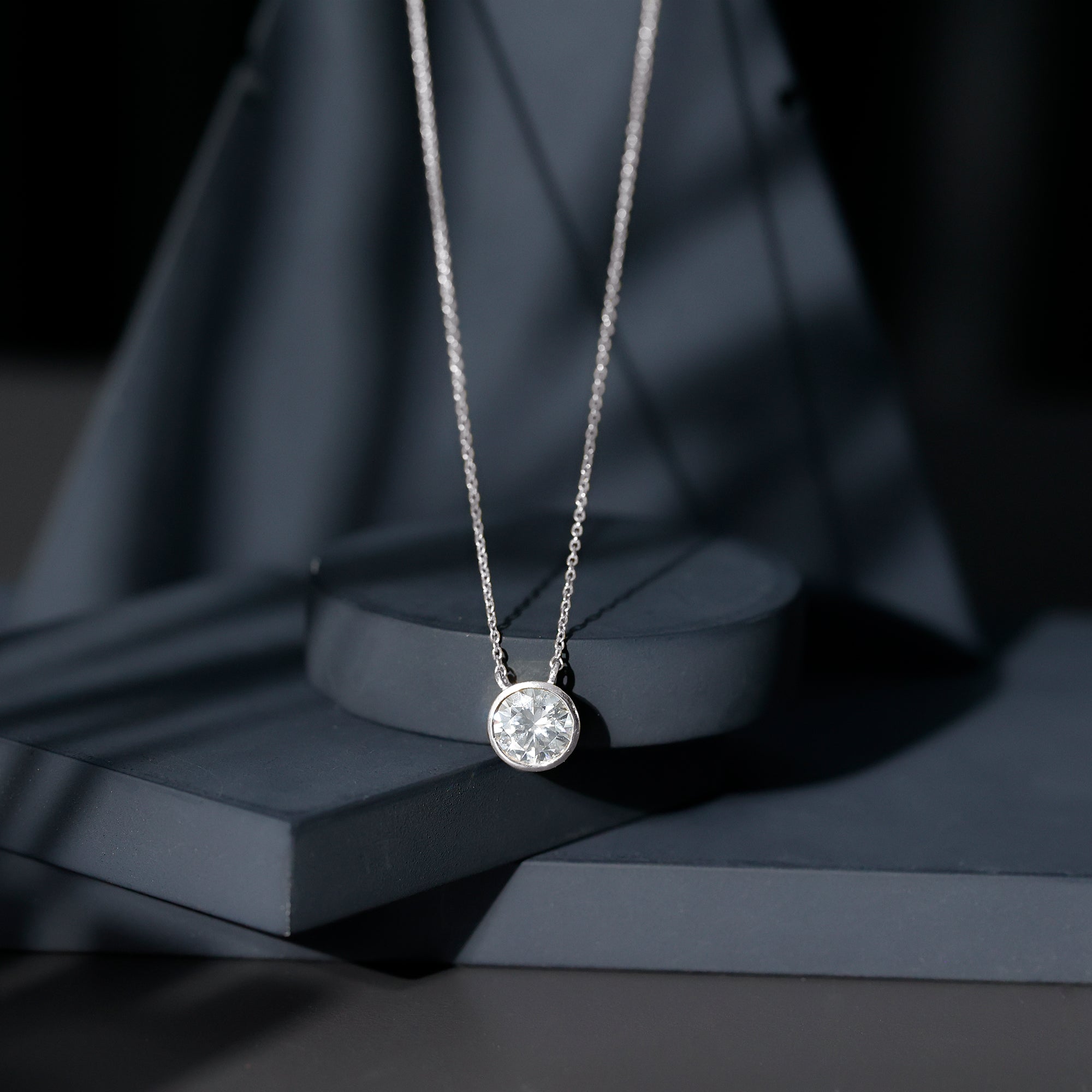 2 CT Certified Moissanite Solitaire Necklace in Bezel Setting
