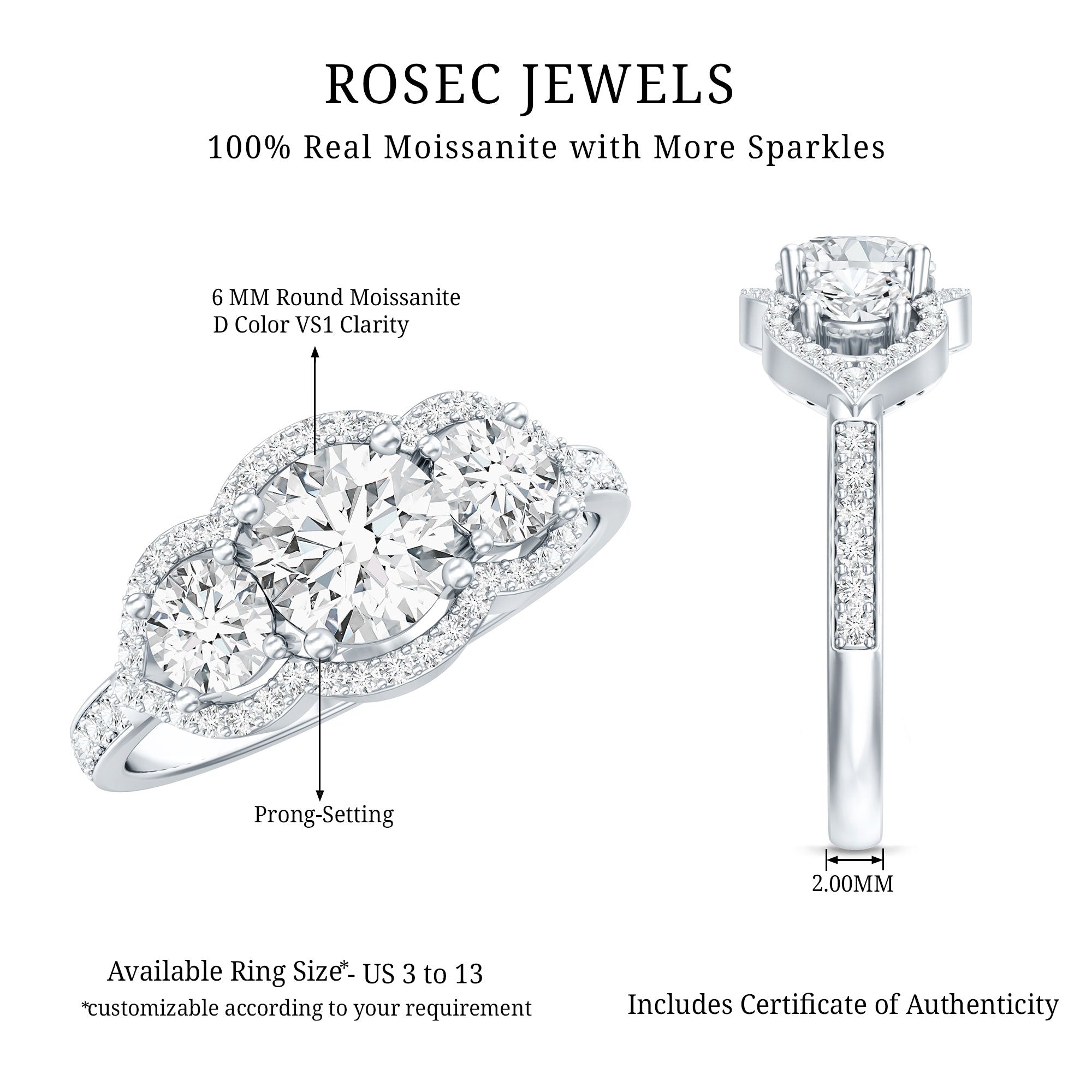 2 CT Certified Moissanite Three Stone Statement Engagement Ring