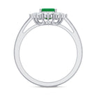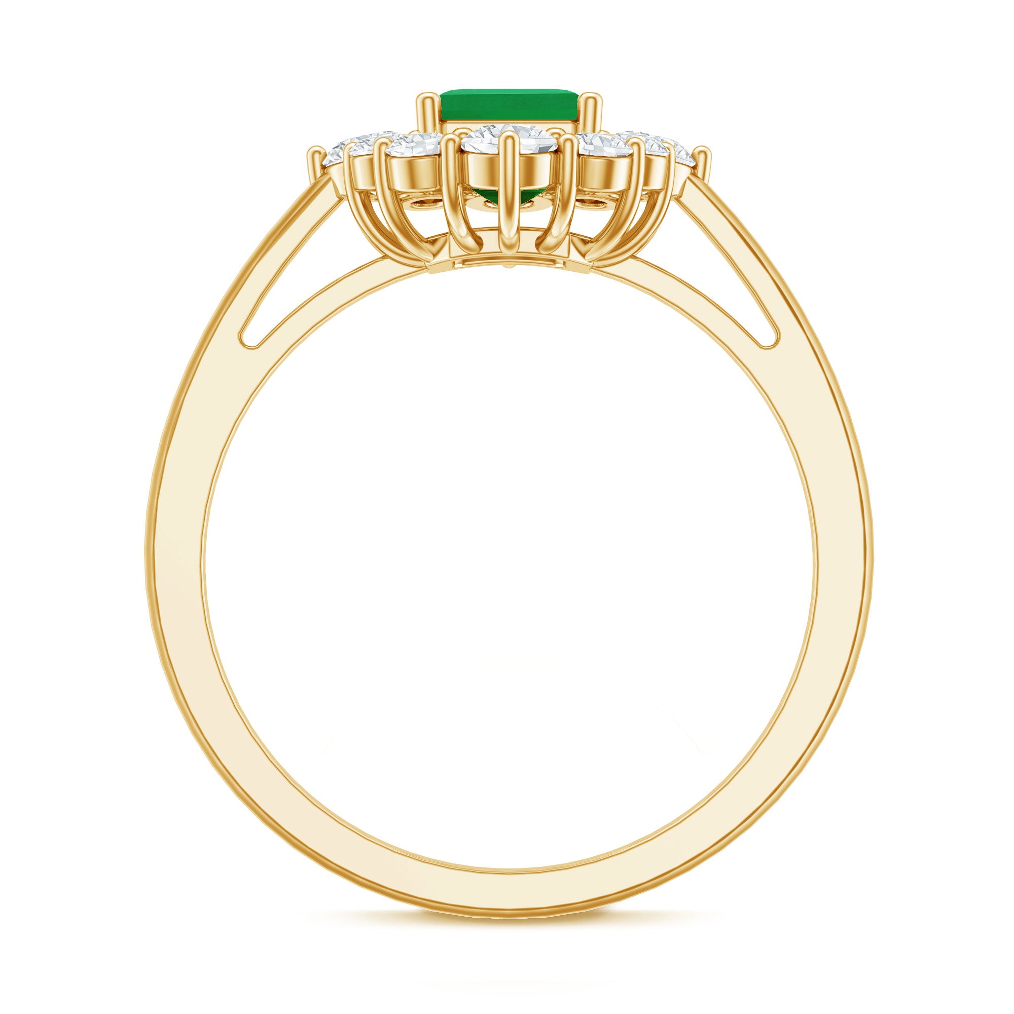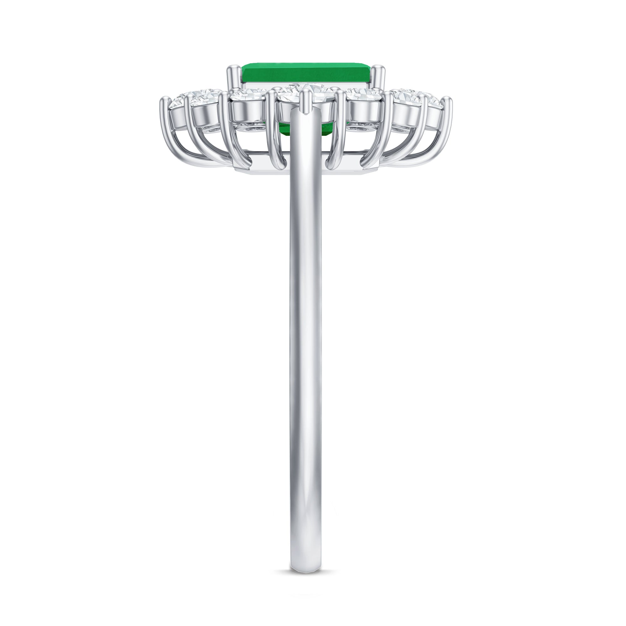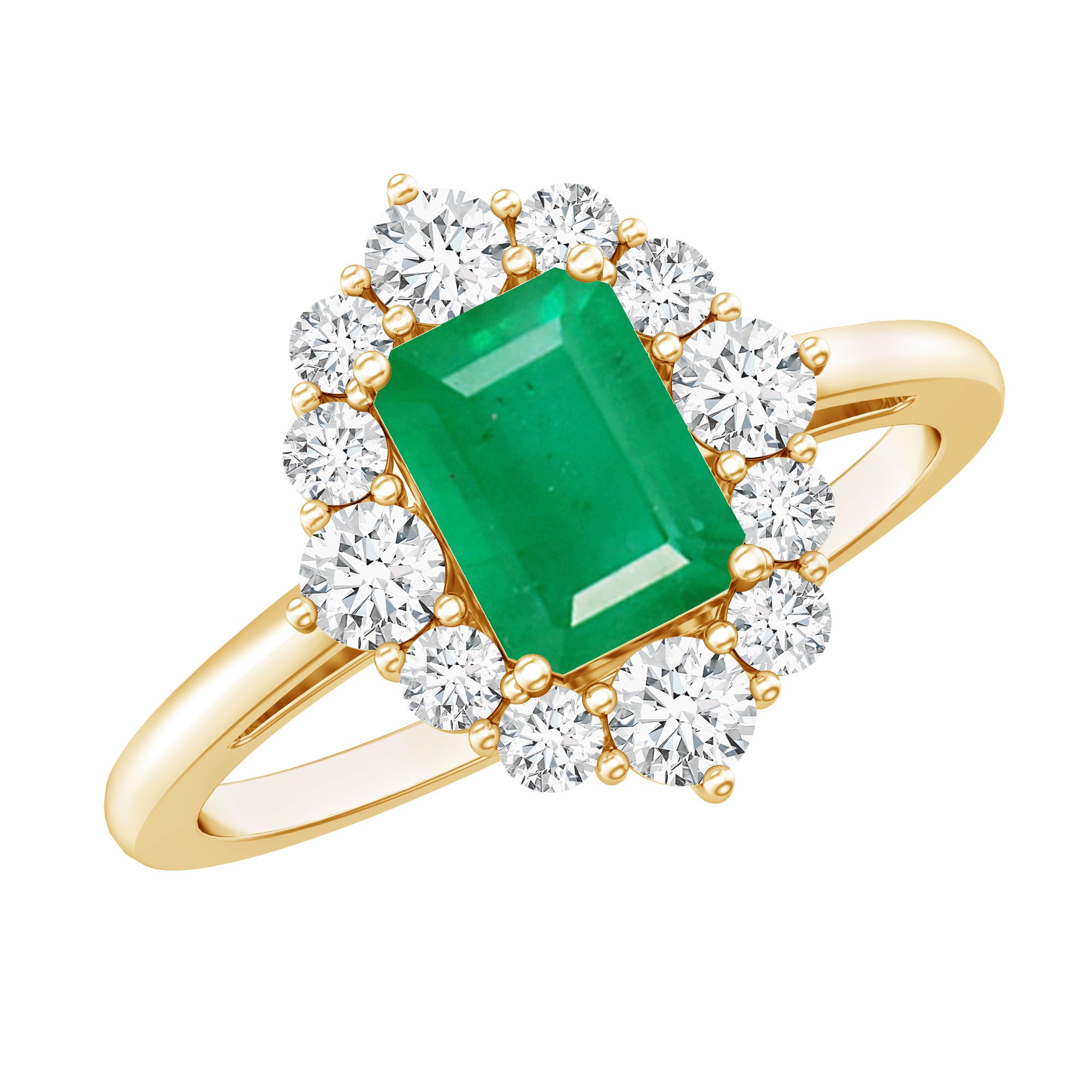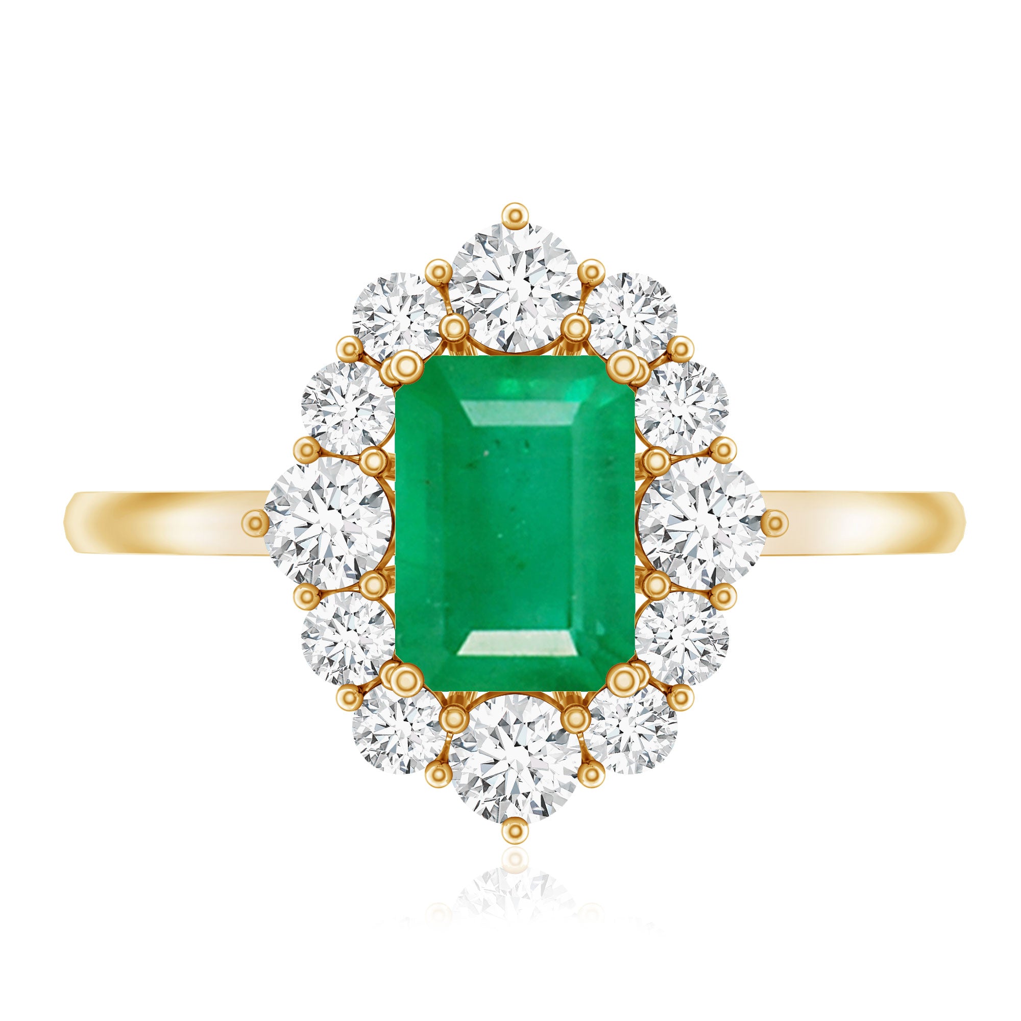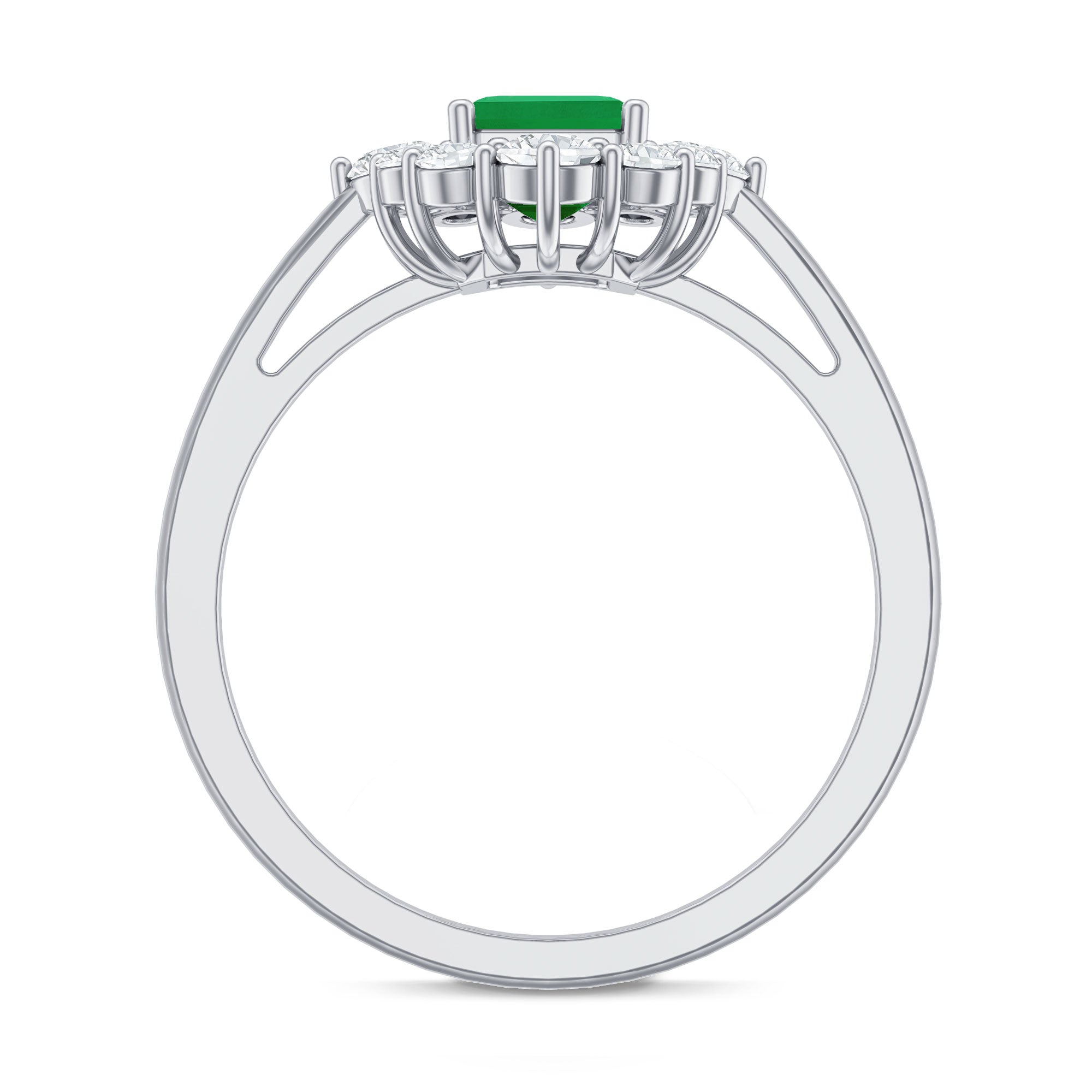 Certified Real Emerald Cut Emerald Engagement Ring with Diamond Halo