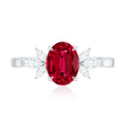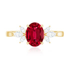 2 CT Claw Set Oval Created Ruby Solitaire and Marquise Diamond Trio Ring
