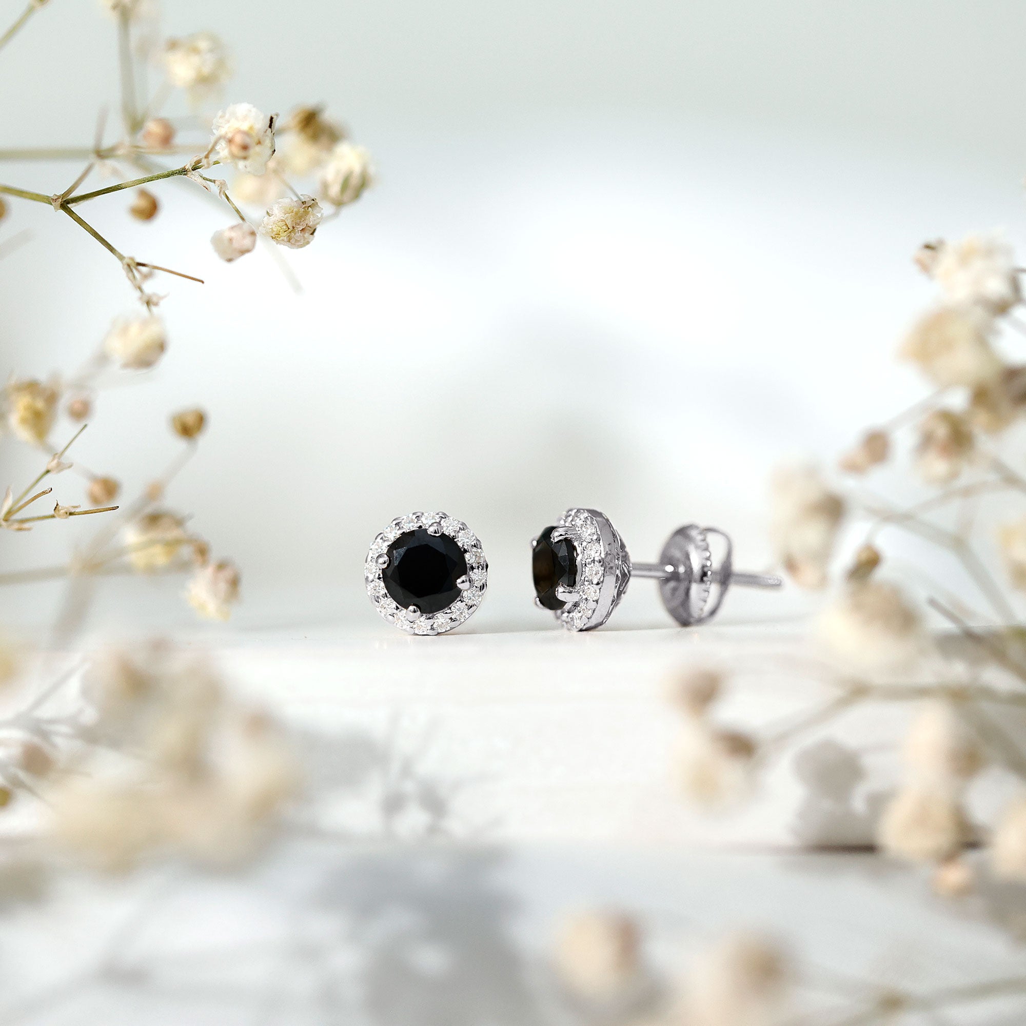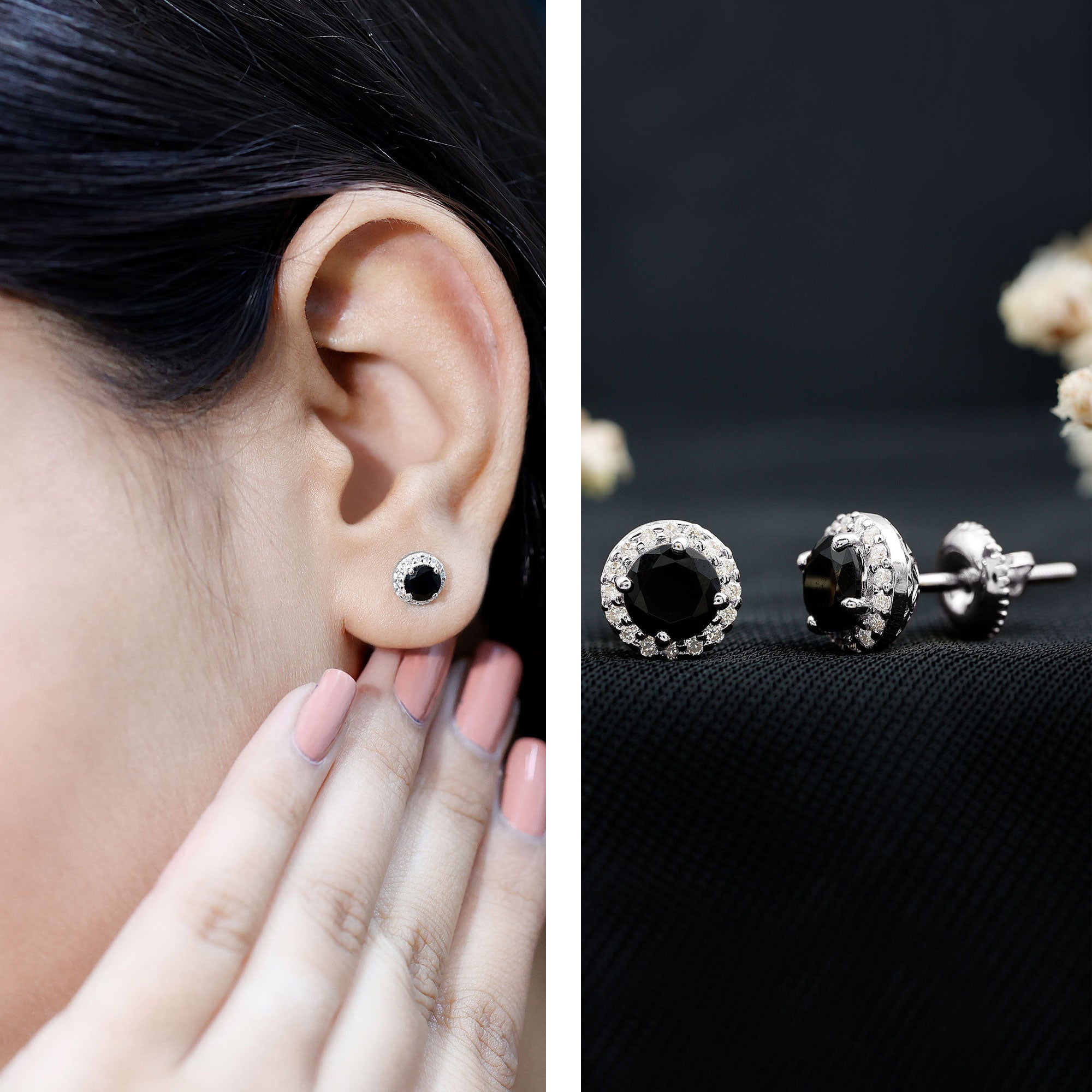 2 CT Created Black Diamond and Moissanite Halo Stud Earrings