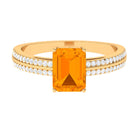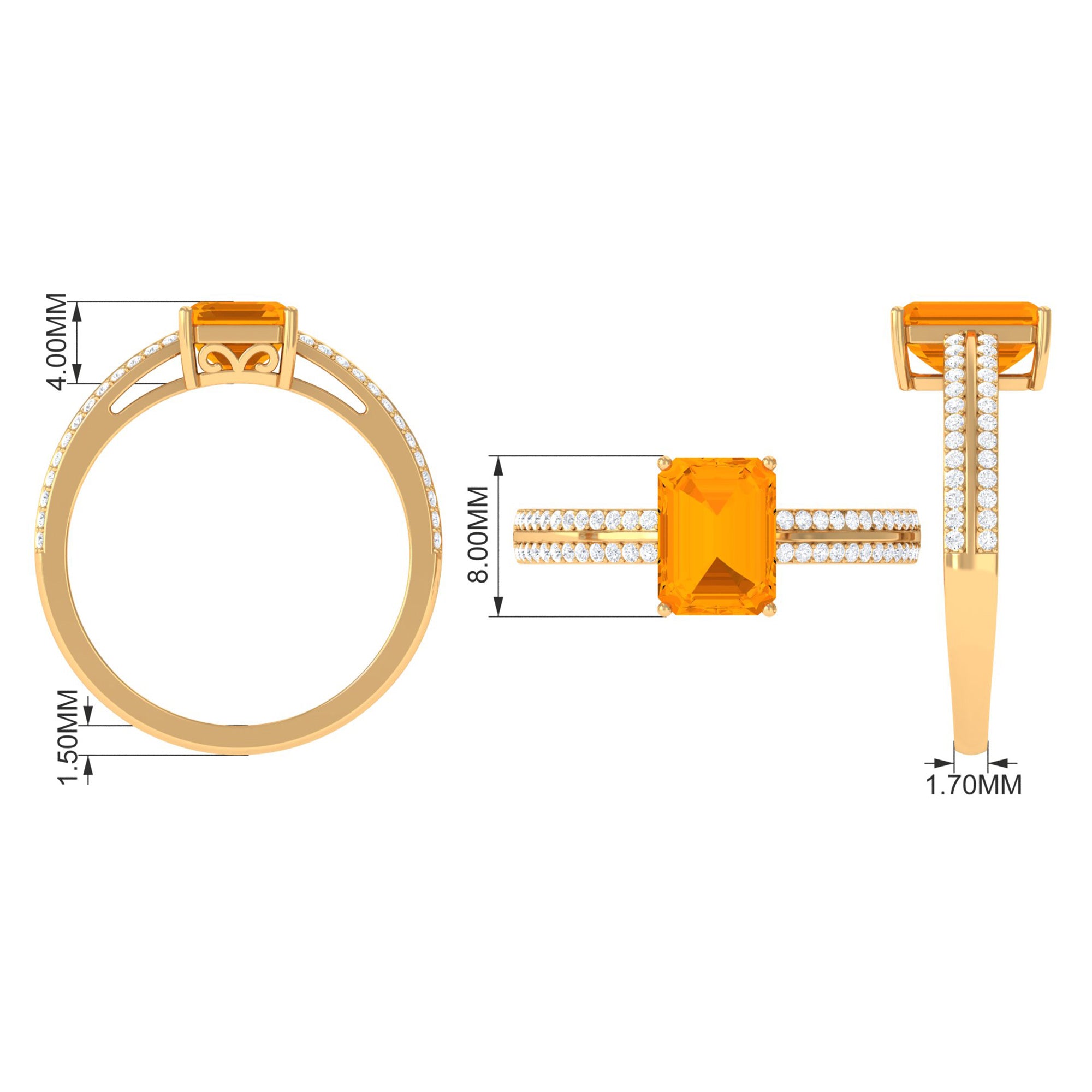 2 CT Emerald Cut Fire Opal and Diamond Side Stone Engagement Ring