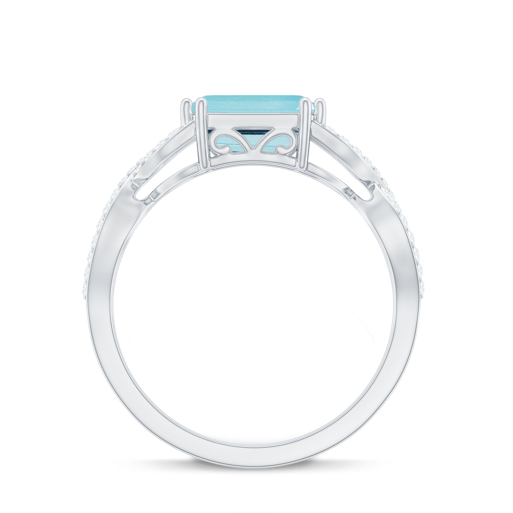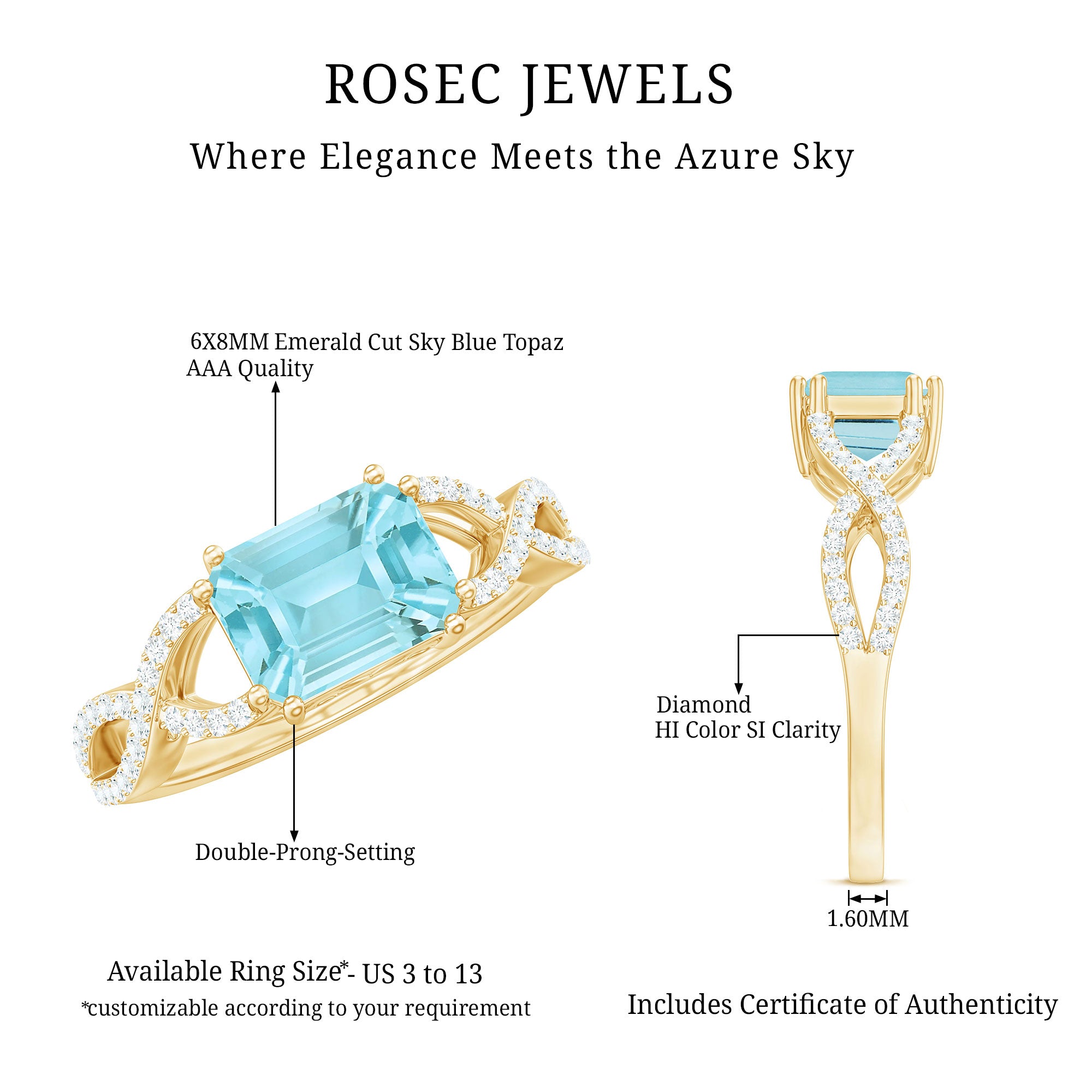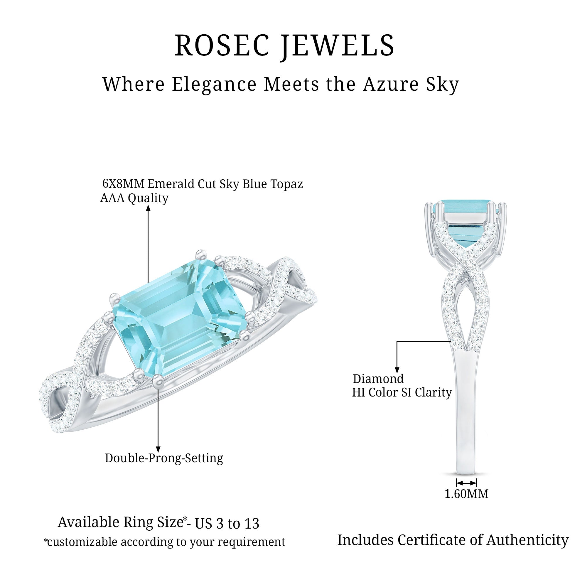 2 CT Emerald Cut Shape Sky Blue Topaz East West Engagement Ring with Diamond