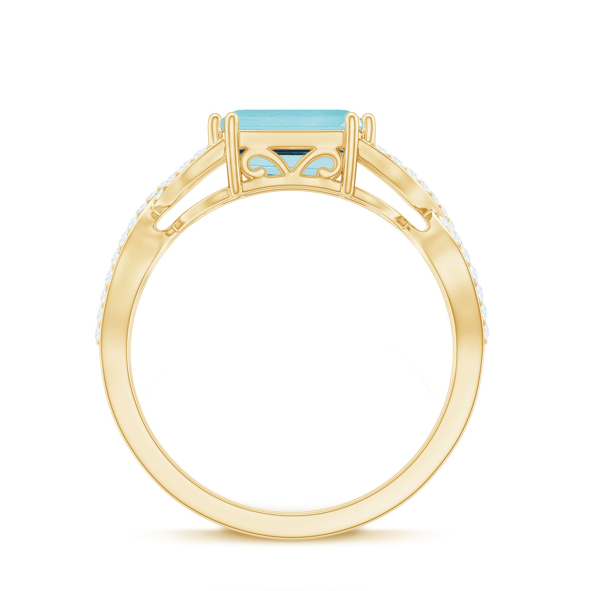 Introducing a stunning Designer Sky Blue Topaz Engagement Ring to enhance your beauty with its captivating blue hue. Featuring an exquisite Emerald Cut Shape Sky Blue Topaz gemstone set as a solitaire in an East-West style and embellished with Diamond on a Gold Crossover Shank, this Solitaire Ring is the perfect choice for women born in December.