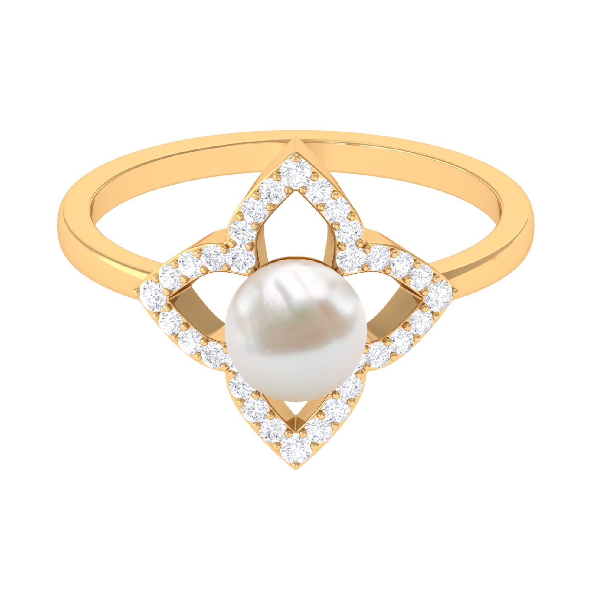 2 CT Freshwater Pearl Flower Engagement Ring with Diamond