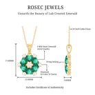 These exquisite Heart-Shaped Created Emerald Gemstones are set in a Prong Setting and surrounded by a delicate Diamond Flower Pendant that exudes sheer elegance. The Created Emerald Floral Pendant Necklace is a versatile piece worn as an everyday accessory or as office wear jewelry. With a total weight of 2 Carats and AAAA Clarity, this pendant symbolizes refinement and beauty.