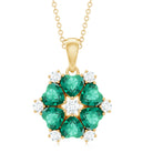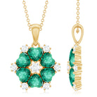 2 CT Heart Shape Created Emerald and Diamond Flower Pendant