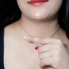 Showcase timeless elegance and heartfelt meaning with this Ruby Heart Necklace, a beautiful accessory that combines simplicity with symbolic power. At the center of the design sits an 8 MM heart shaped lab created ruby, carefully set in prong setting to highlight its radiant red color. Hanging gracefully from a delicate cable chain, the Red Ruby Necklace sits comfortably around the neck and can be paired effortlessly with both casual and formal outfits. Its simple yet striking design ensures it remains versatile, suitable for everyday wear or for celebrating special moments such as anniversaries, birthdays, or romantic occasions. Crafted with care and precision, the Ruby Solitaire Necklace blends durability with refined beauty, ensuring it will be treasured for years. Its heart shape represents love and affection, making it a thoughtful and symbolic gift. Whether given to a loved one or worn as a personal statement of strength and elegance, this Lab Created Ruby Necklace is a stunning way to add sparkle and meaning to any jewelry collection.