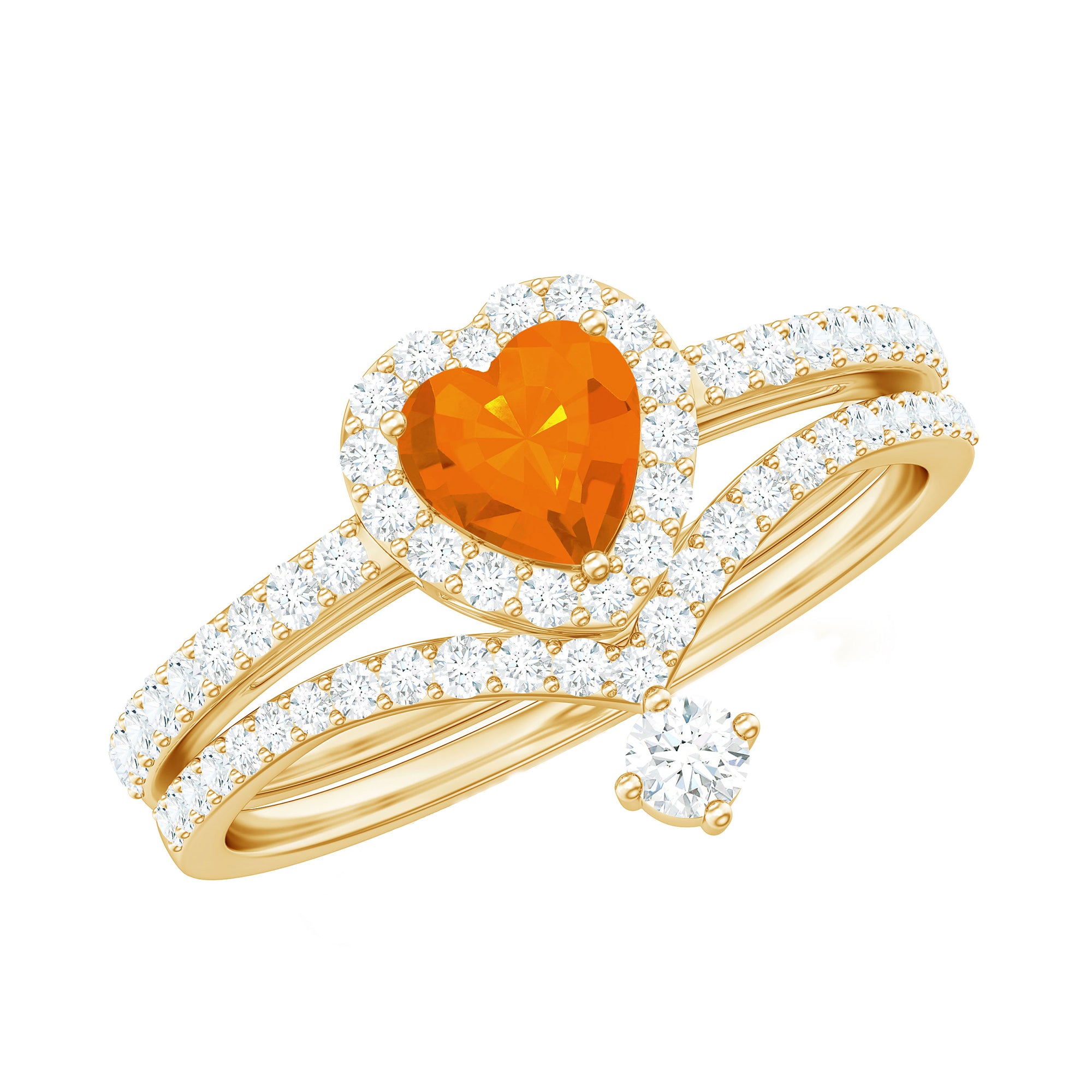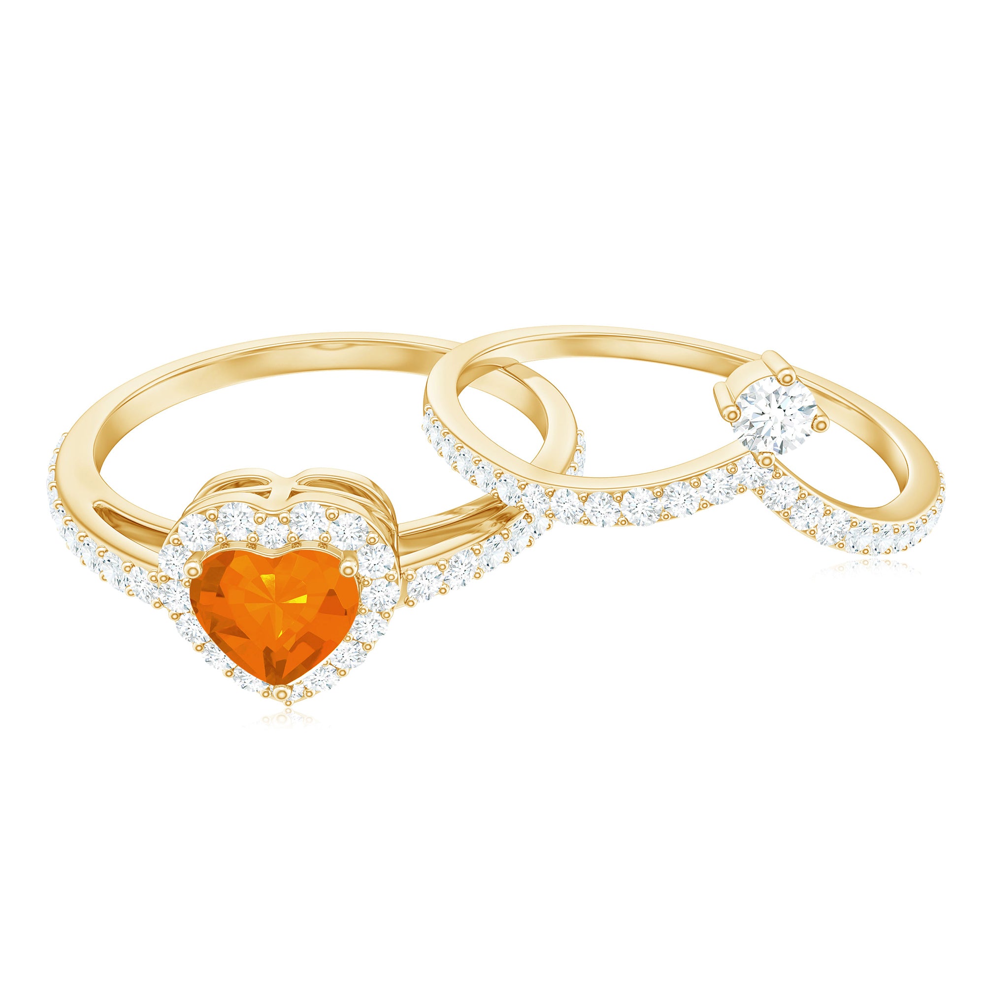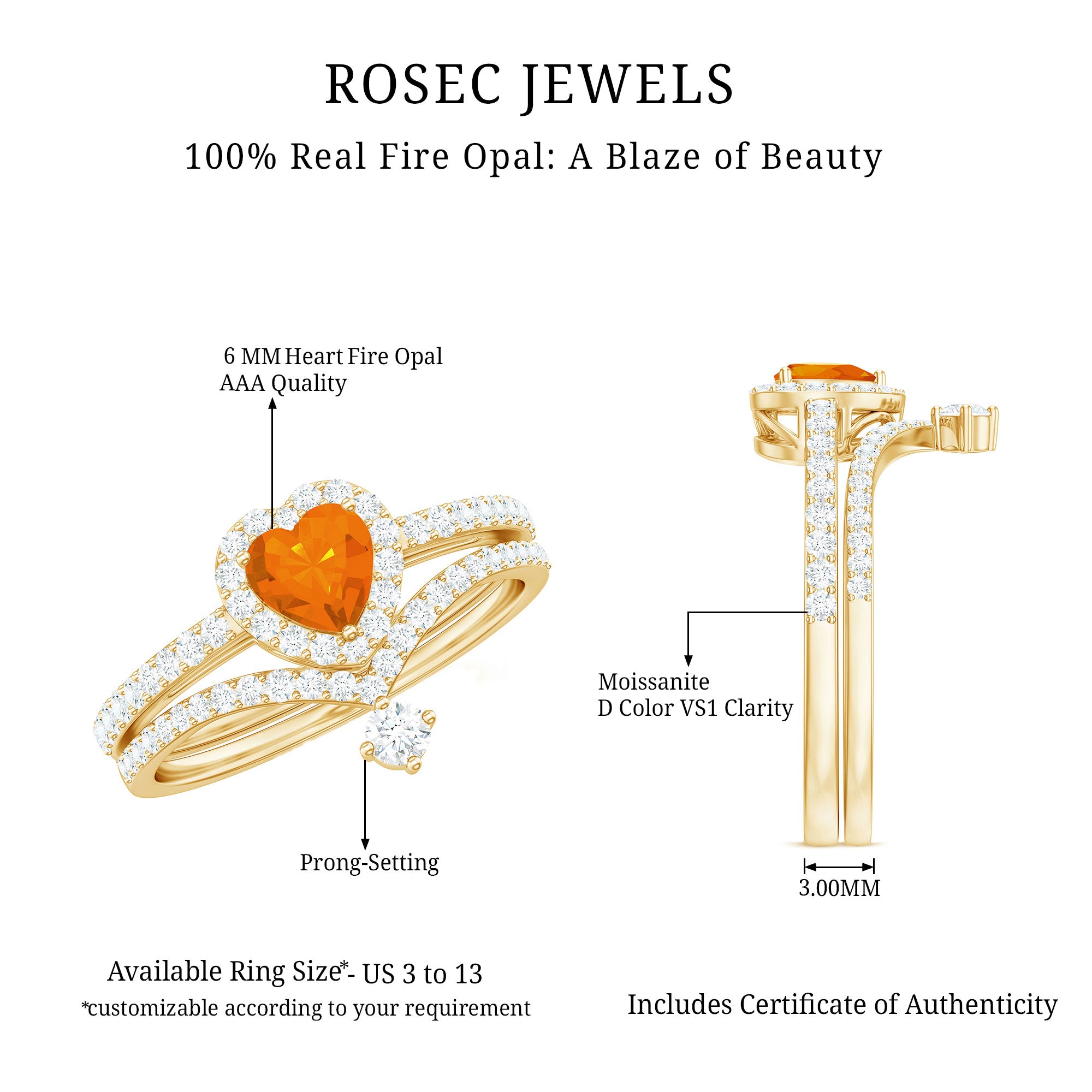 This mesmerizing Ring set of 2 features a Heart Shape Fire Opal perfectly complemented by the dazzling brilliance of Moissanite gemstones. With its eye-catching design and exceptional sparkle, this ring set is a stunning choice for engagement or special occasions. Let the intense beauty of fire opal and Moissanite ignite your love and radiate elegance and charm.
