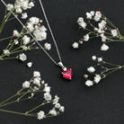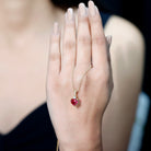 Classic and romantic in its design, this Lab Grown Ruby Necklace is inspired by the gesture of love and heartfelt gratitude. Embellished with 8 mm Heart Shape Lab Grown Ruby in Prong Setting with the Round brilliant cut Moissanite scintillating from the top. Dangling through a chain, this Lab Ruby Pendant Necklace is a treasure piece of jewelry that carries special meaning and is a stylish accessory that plays beautifully with any ensemble. With a symbolism of string bond or affection, this Lab Ruby Heart Necklace is a statement, an elegant piece of jewelry, that would glitter up your neckline. Unique and truly one-of-a-kind, this Heart Shaped Pendant is timeless and special that represents your love for the one close to your heart. Its classic design and sweet heart detail still add some sophistication while being appropriate for any special event.