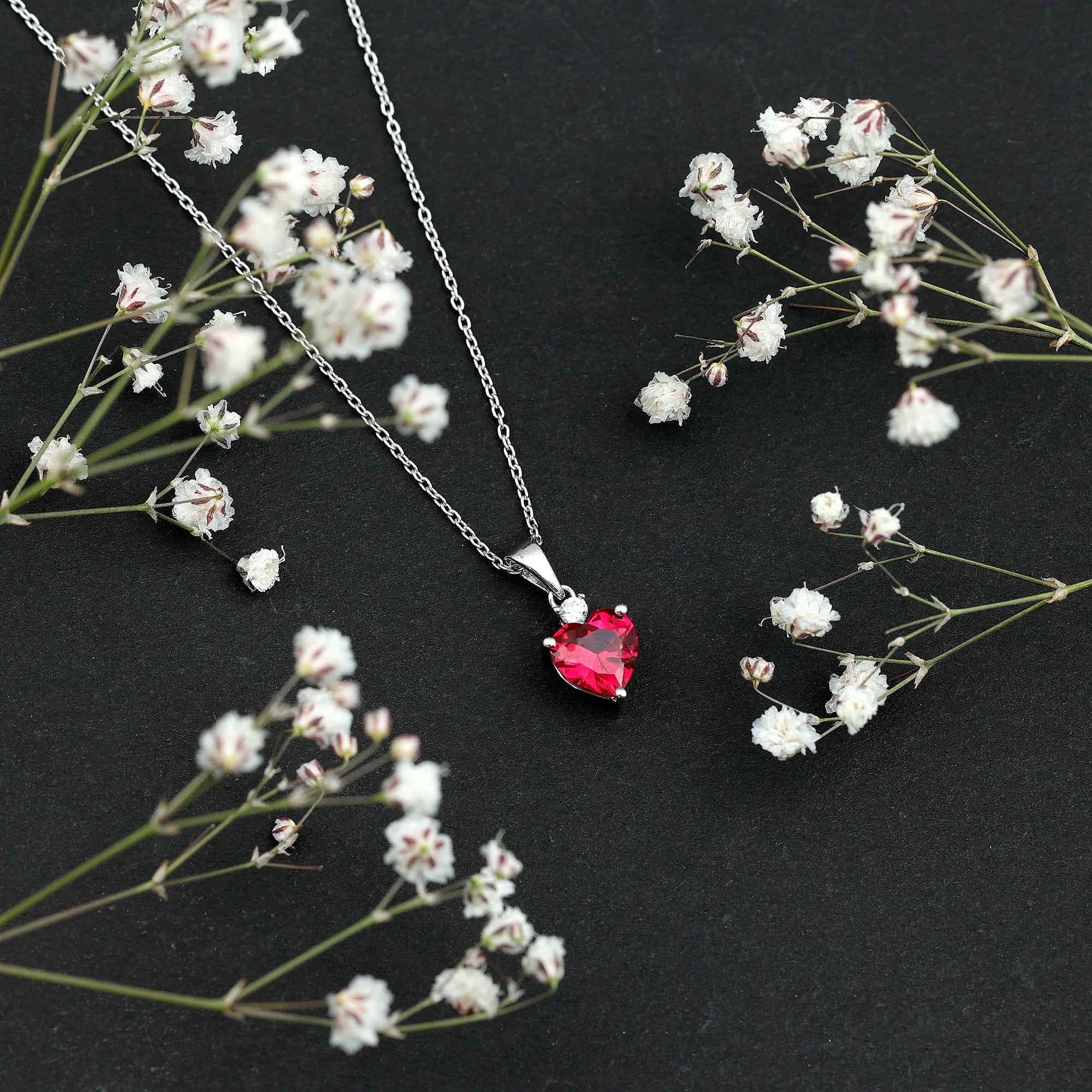 2 CT Lab Grown Ruby Heart Pendant Necklace with Moissanite