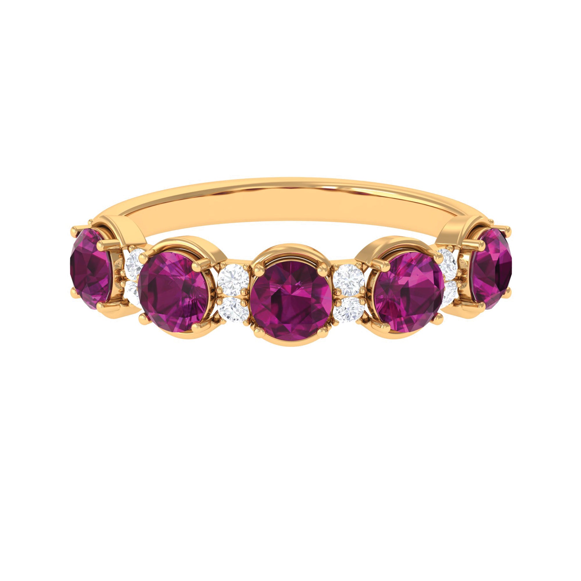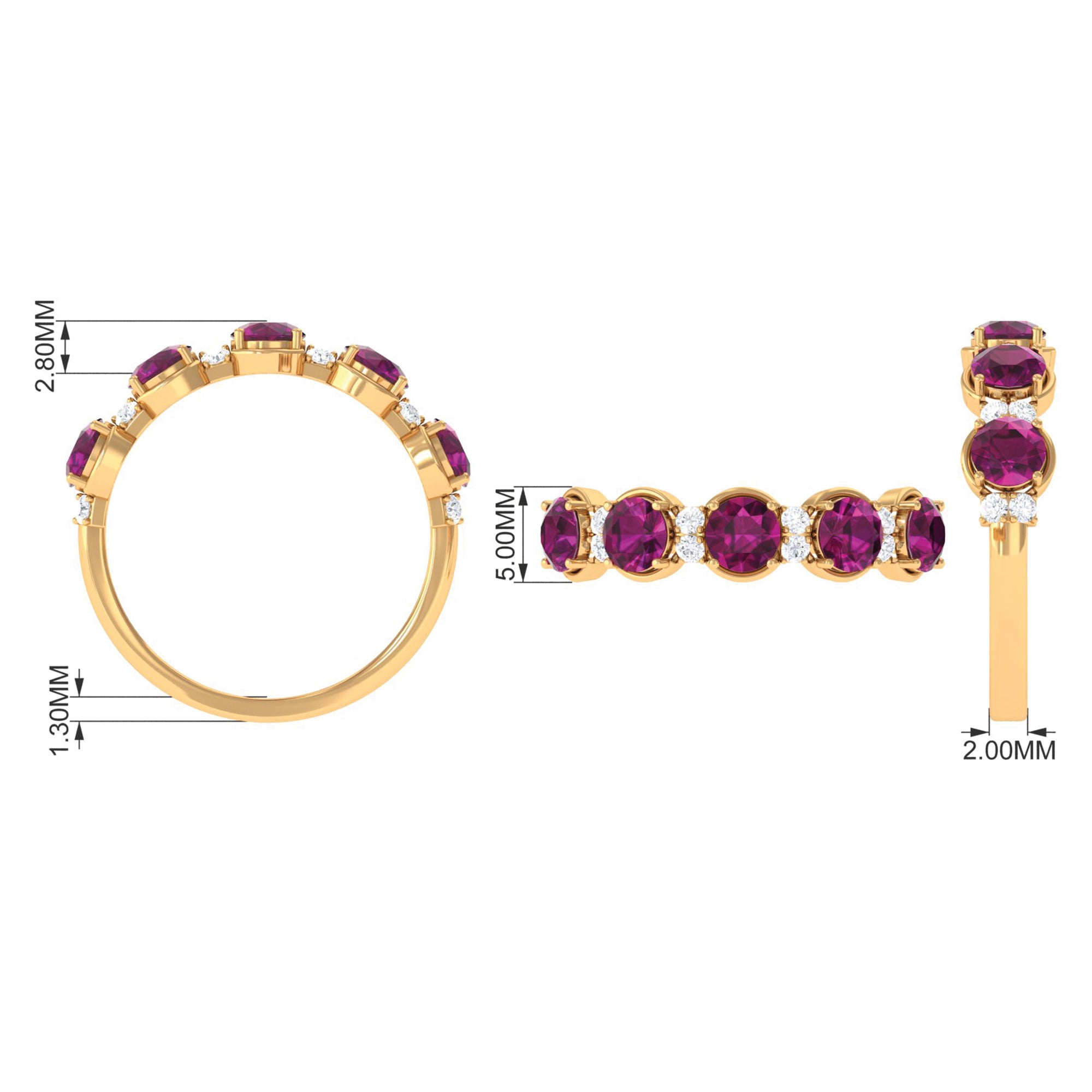 2 CT Natural Rhodolite and Diamond Half Eternity Ring