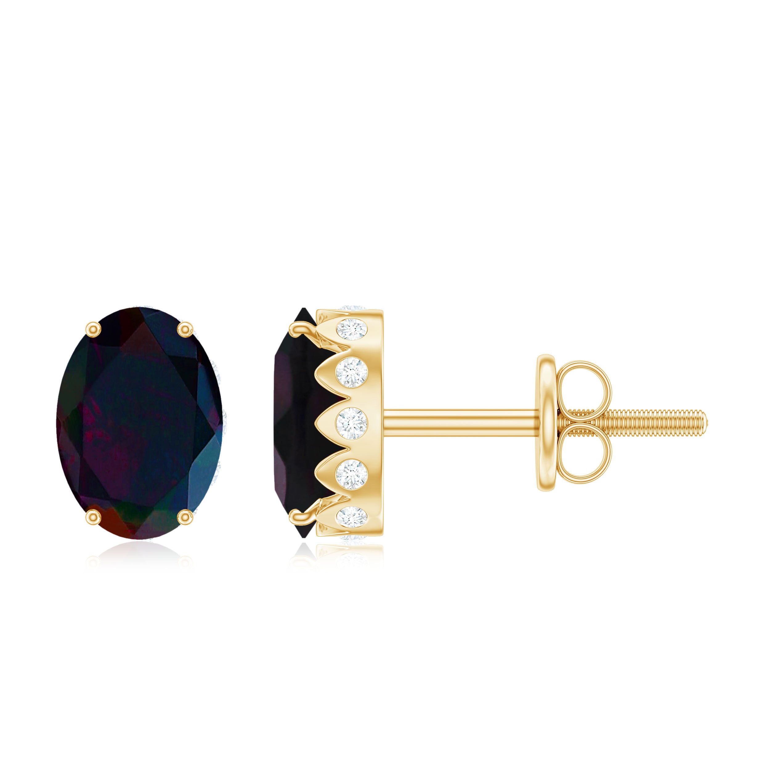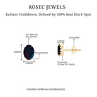 Add a touch of glamour to your outfit with these stunning Solitaire Stud Earrings adorned with Oval Cut Black Opal in Prong Setting with sparkling Moissanite gemstones. The addition of Moissanite gemstones enhances the beauty of the opal and adds a touch of luxury. The screw back ensures that they stay securely in place, making them comfortable and easy to wear.