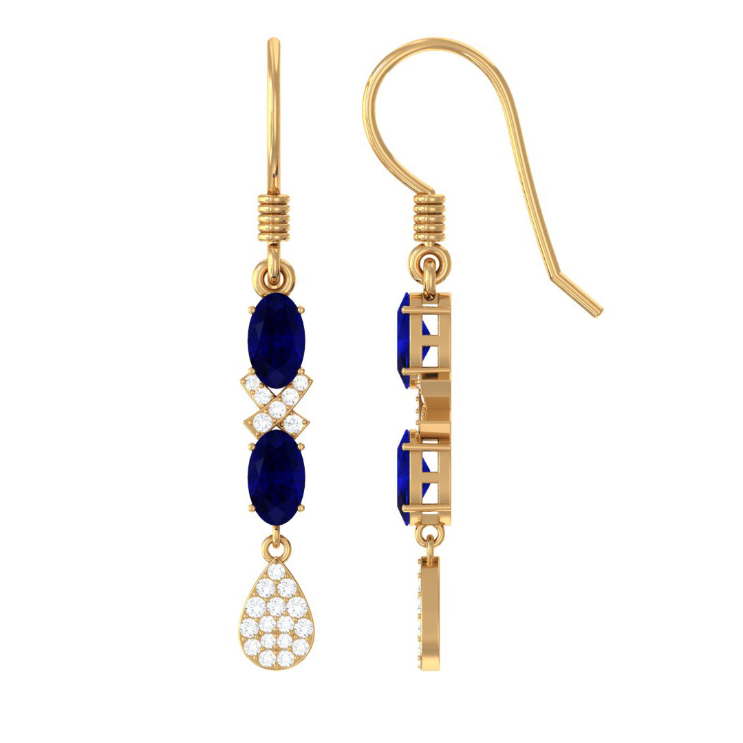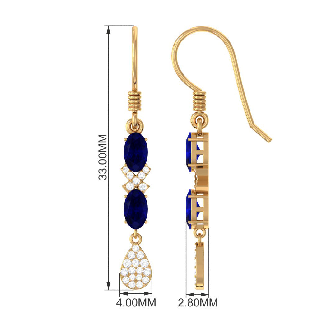 2 CT Oval Cut Blue Sapphire and Diamond Dangle Earrings