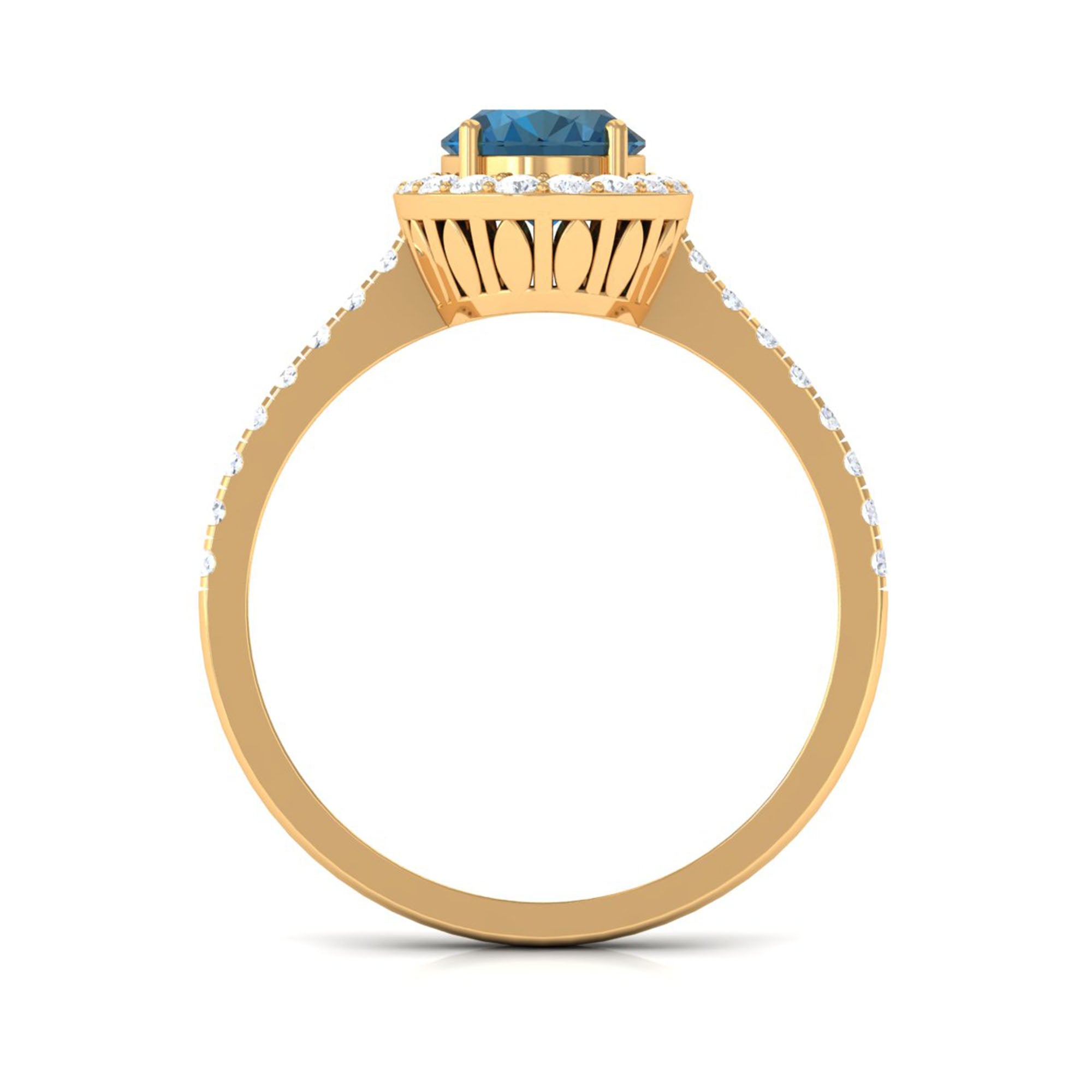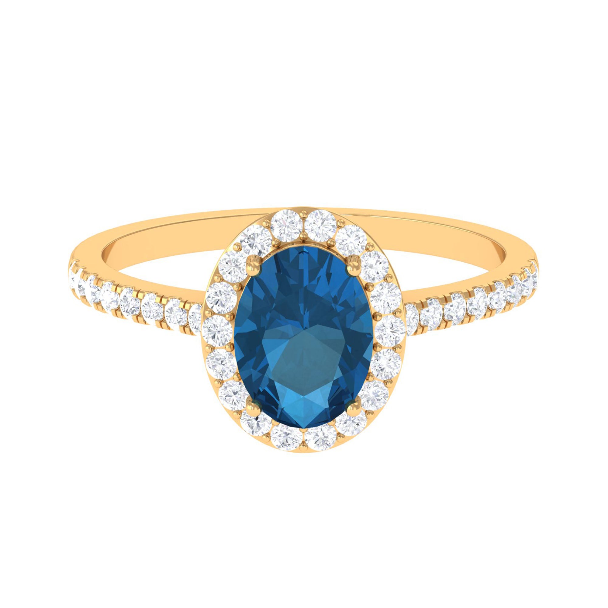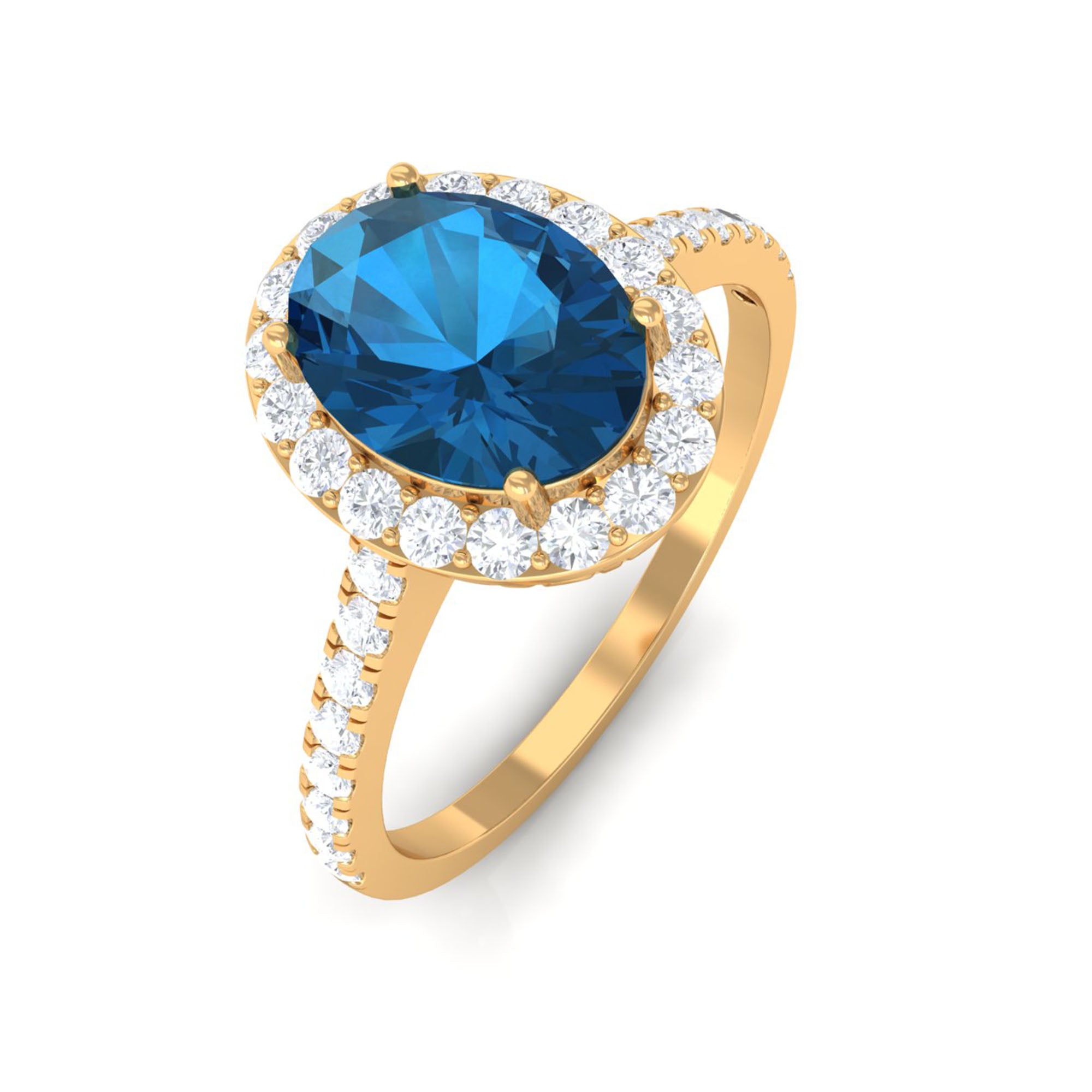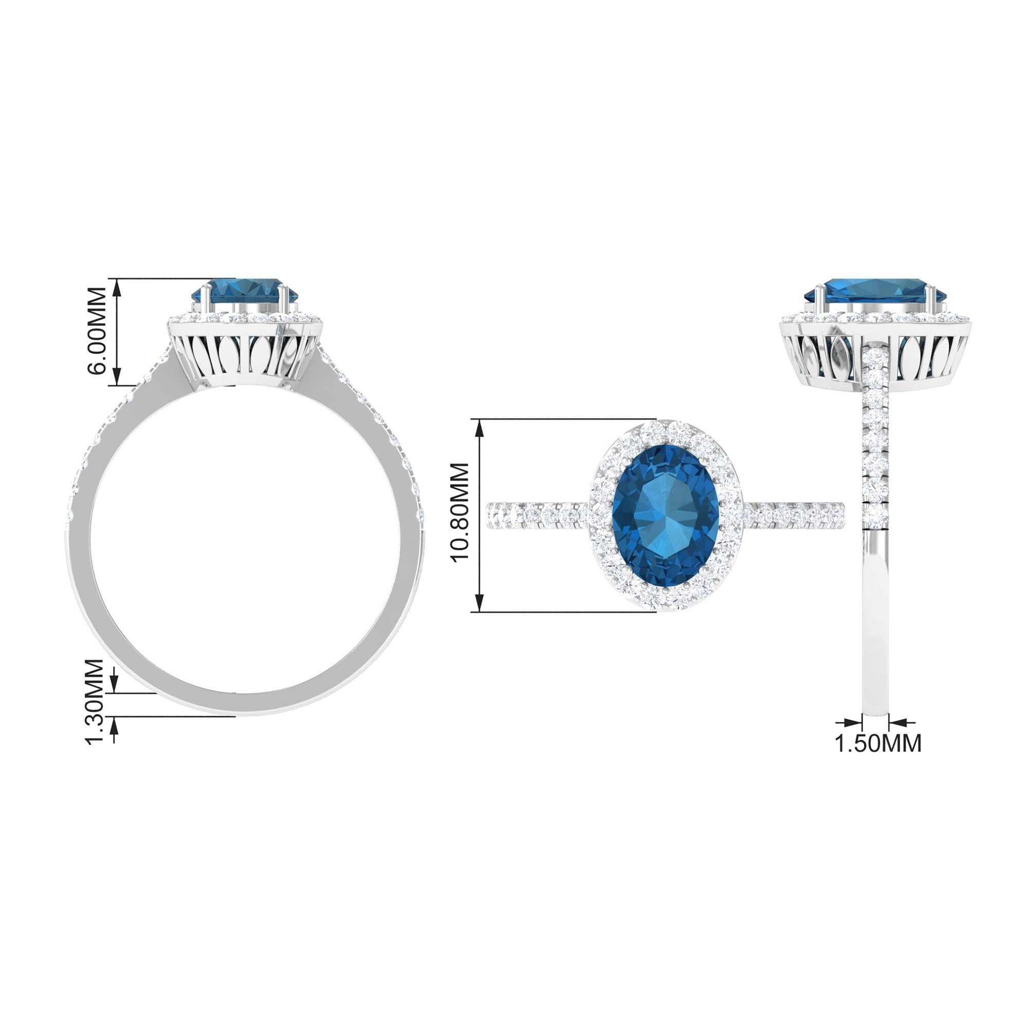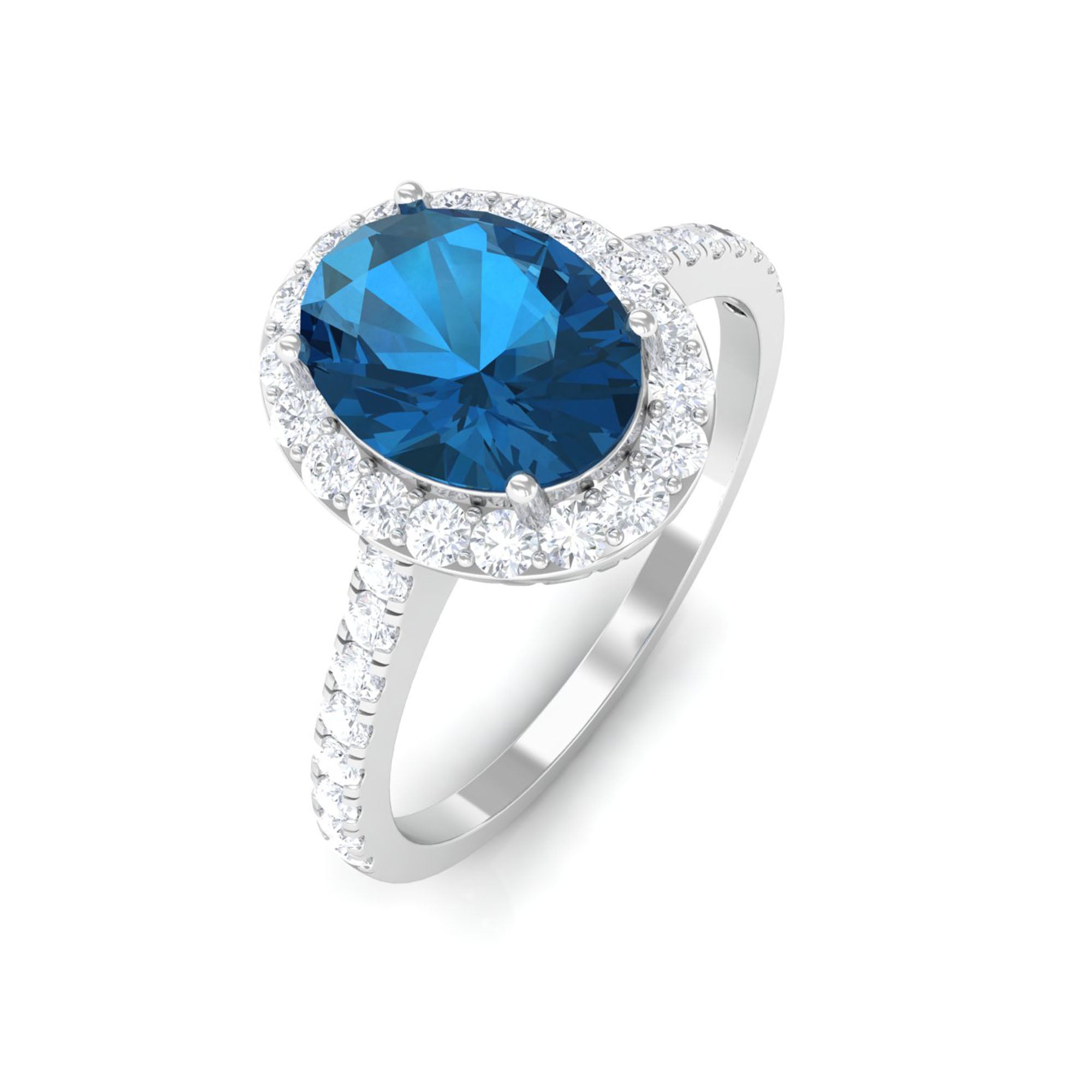 2 CT Oval Cut London Blue Topaz Solitaire Ring with Diamond Halo