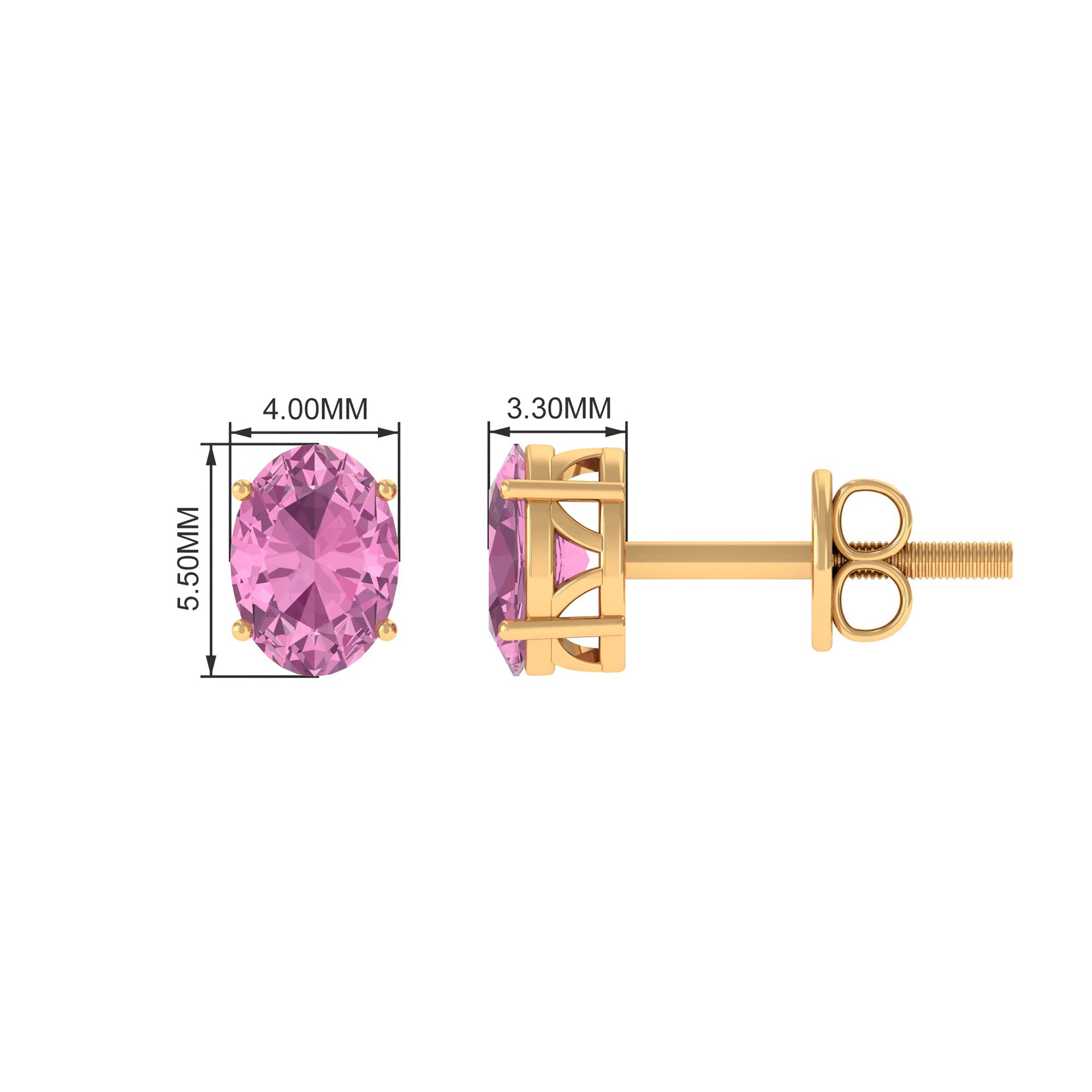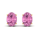 They are a pair of Stud Earrings for Women adorned in Gold and consist of an 7X5 MM Oval Cut Pink Tourmaline as Solitaire embellished in Prong Setting.