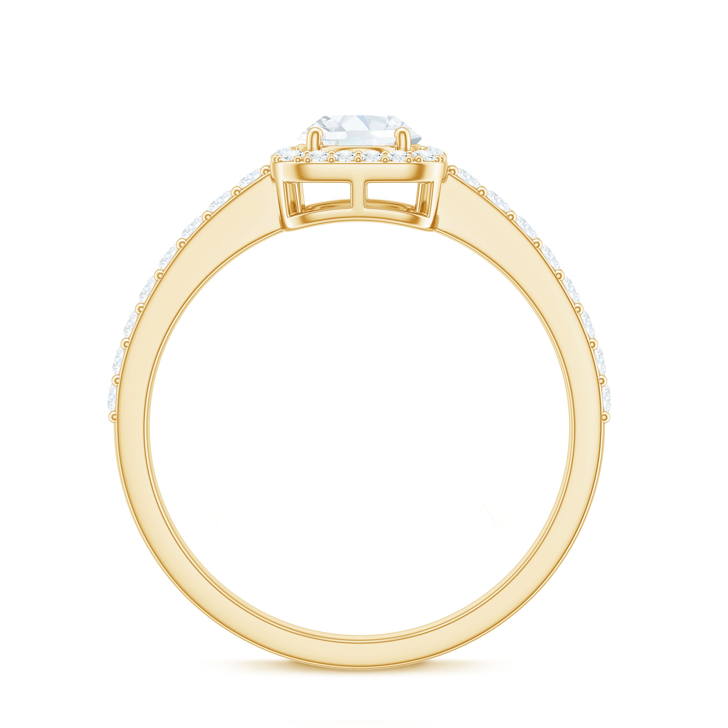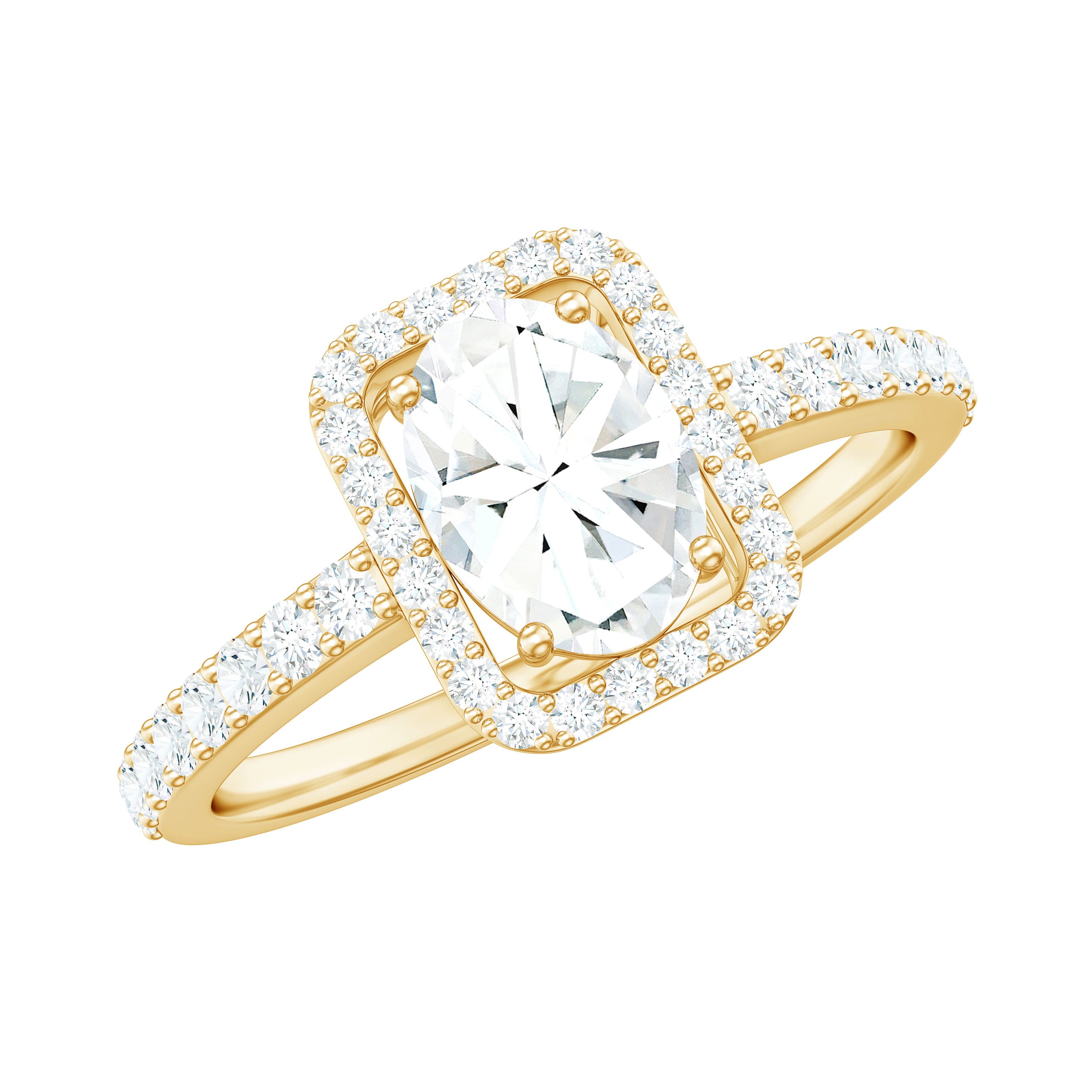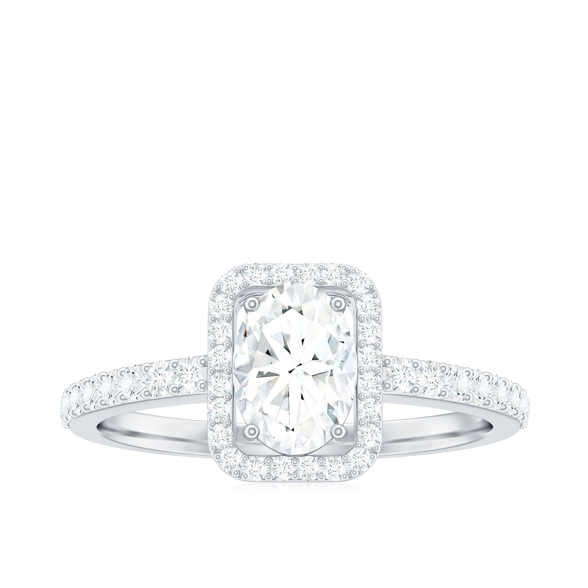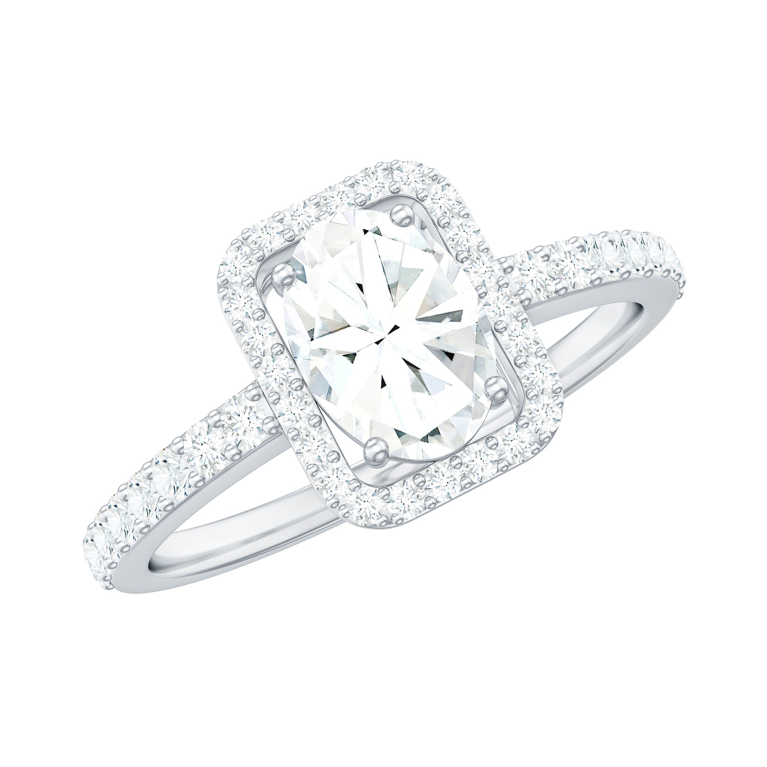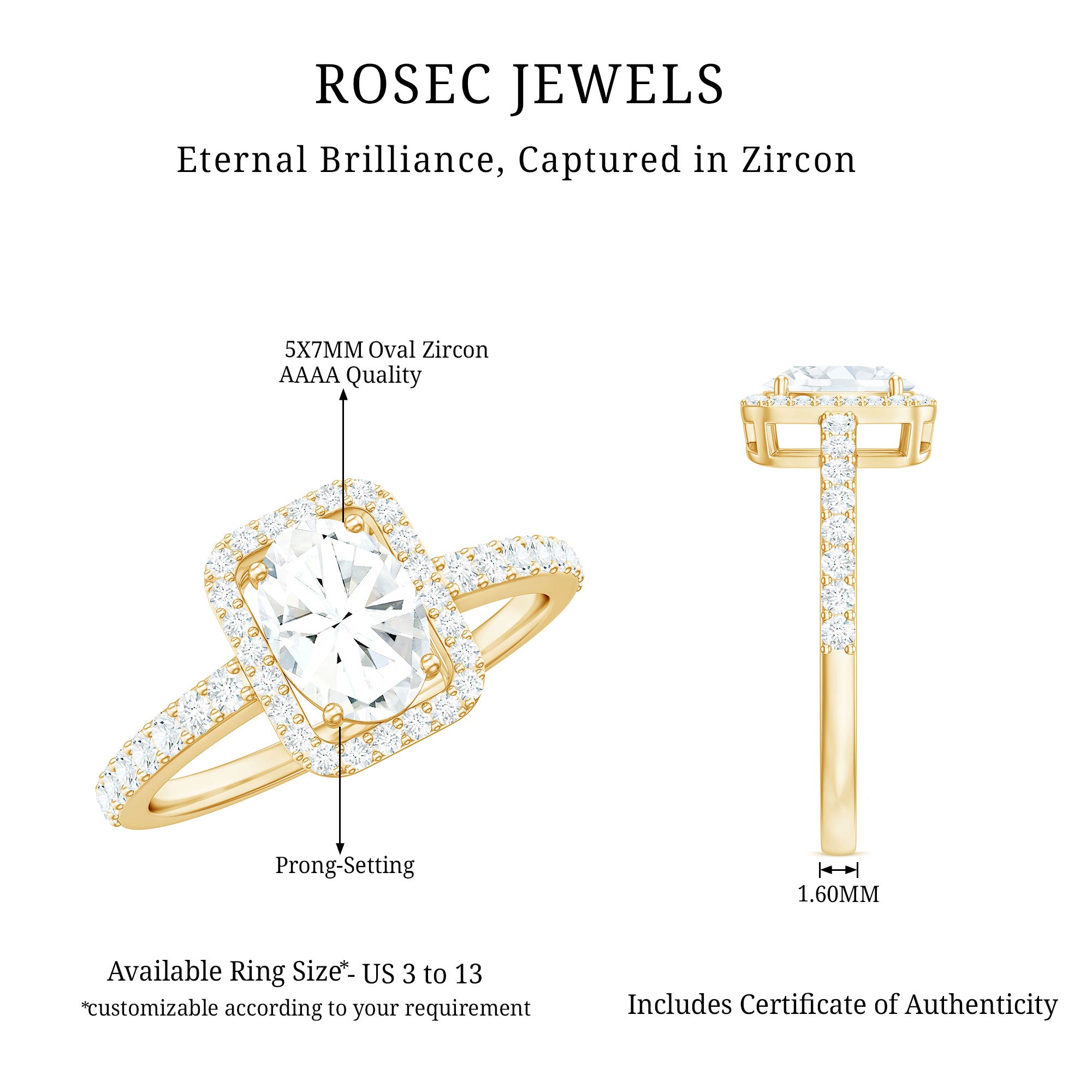 2 CT Oval Cut Zircon Halo Engagement Ring with Side Stones