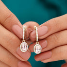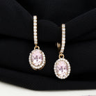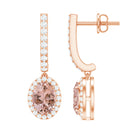 2 CT Oval Morganite and Diamond Hoop Drop Earrings