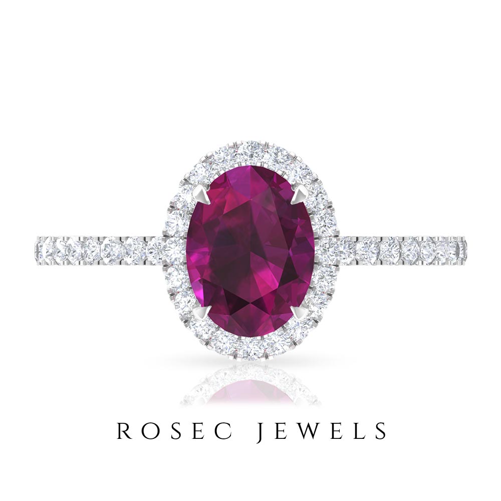 2 CT Oval Rhodolite Engagement Ring with Diamond Halo