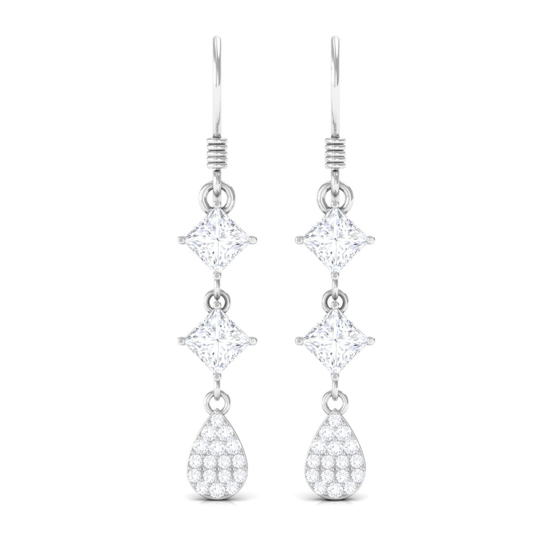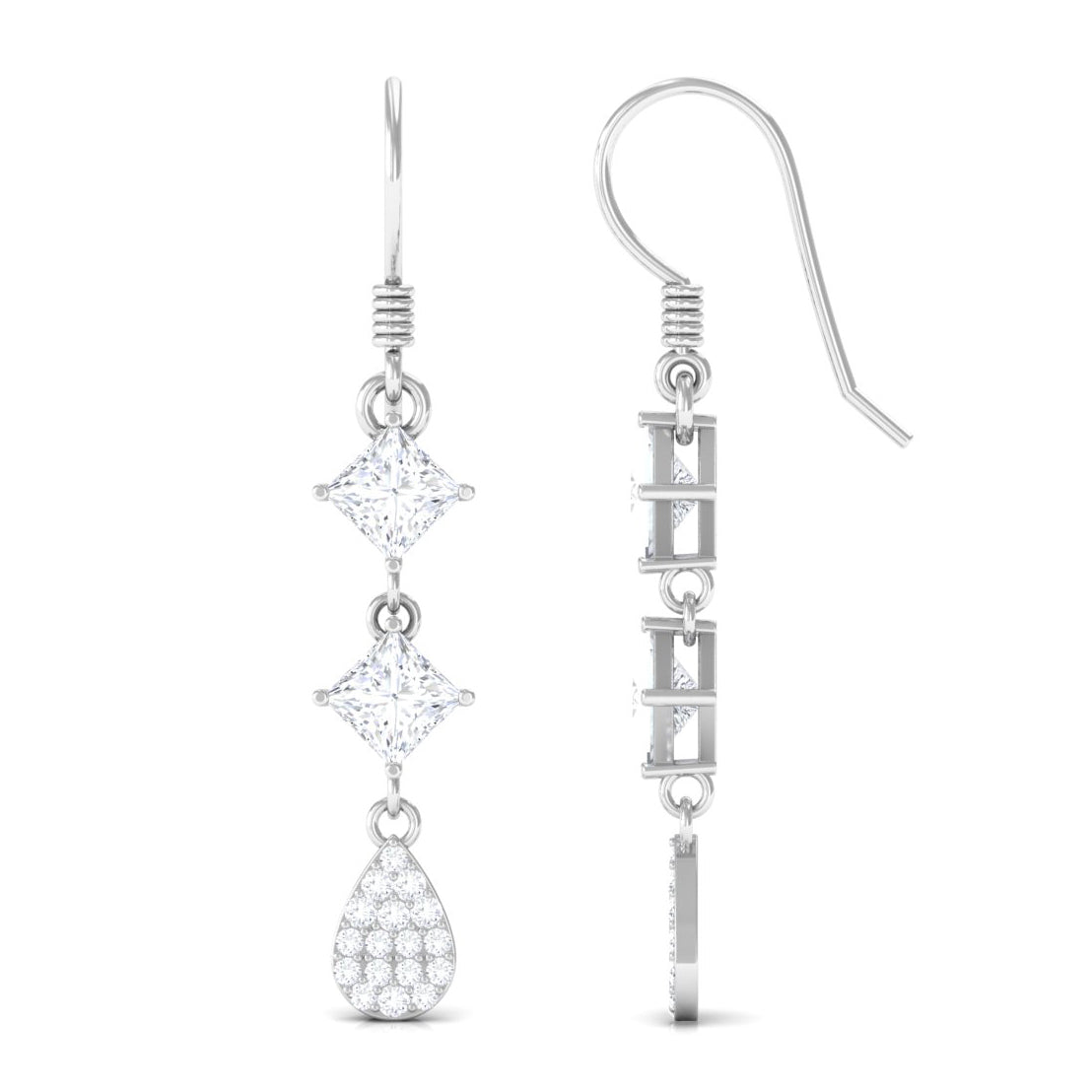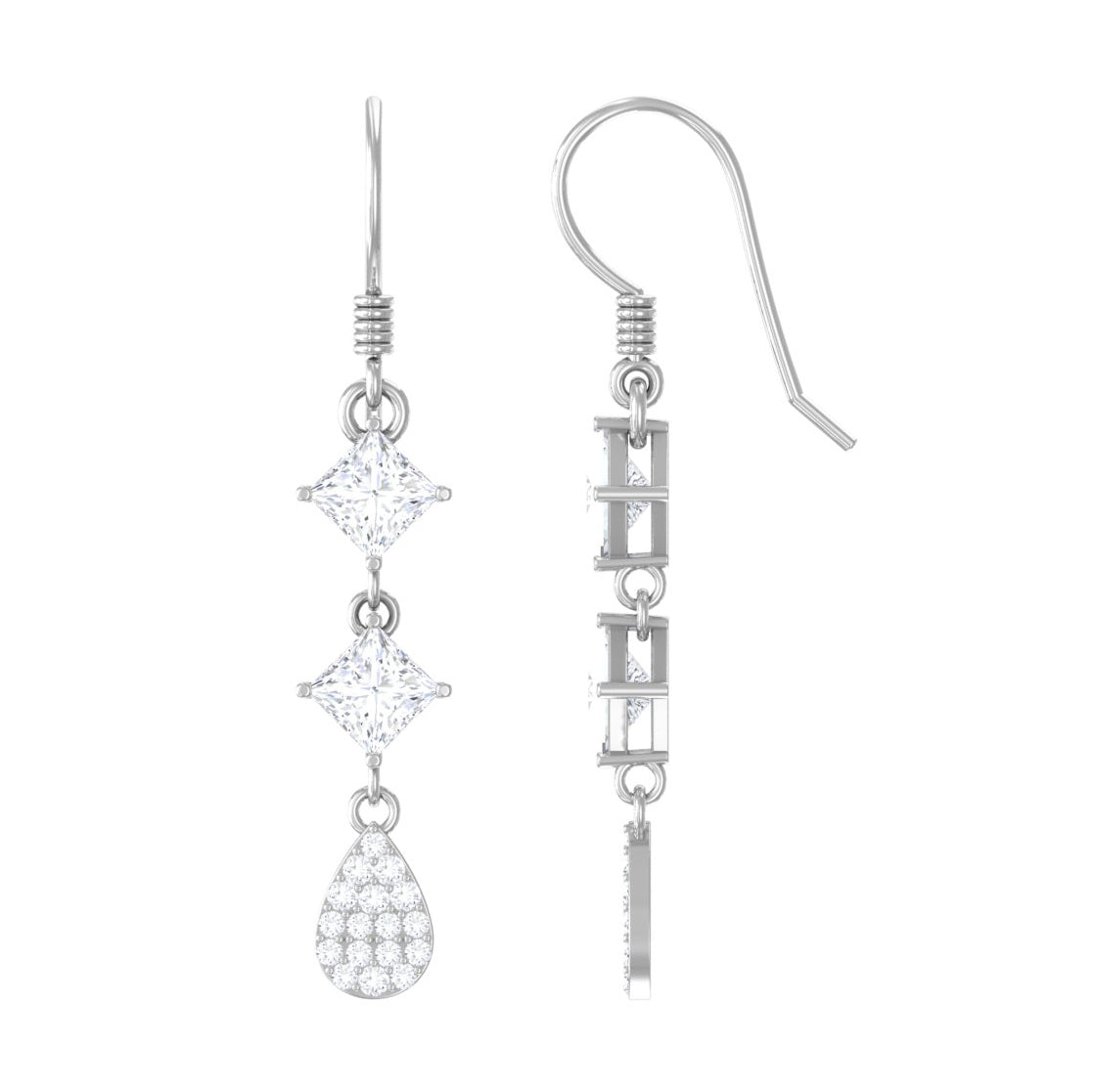 2 CT Princess and Round Cut Moissanite Dangle Drop Earrings