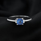 2 CT Princess Cut Created Blue Sapphire Promise Ring with Diamond Side Stones