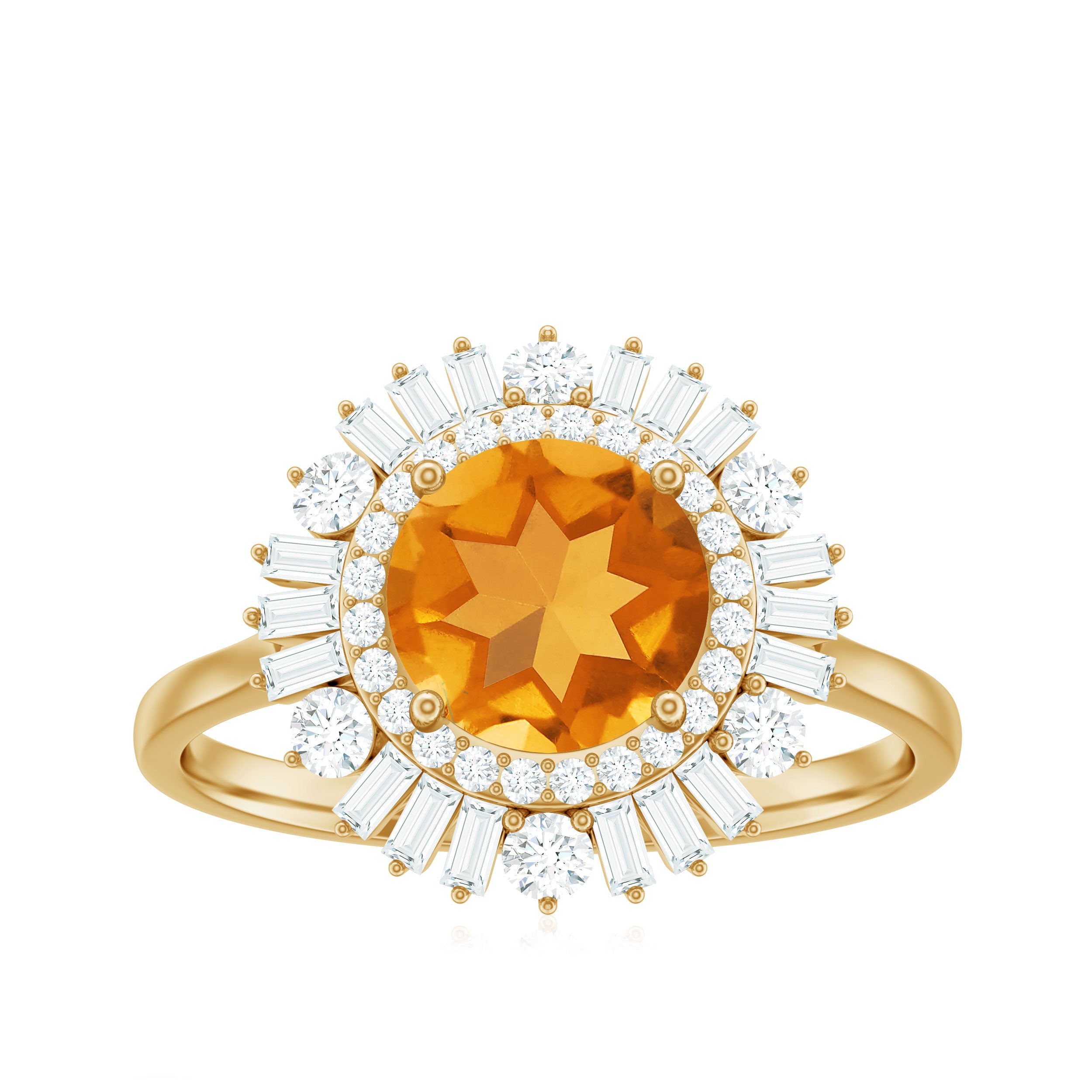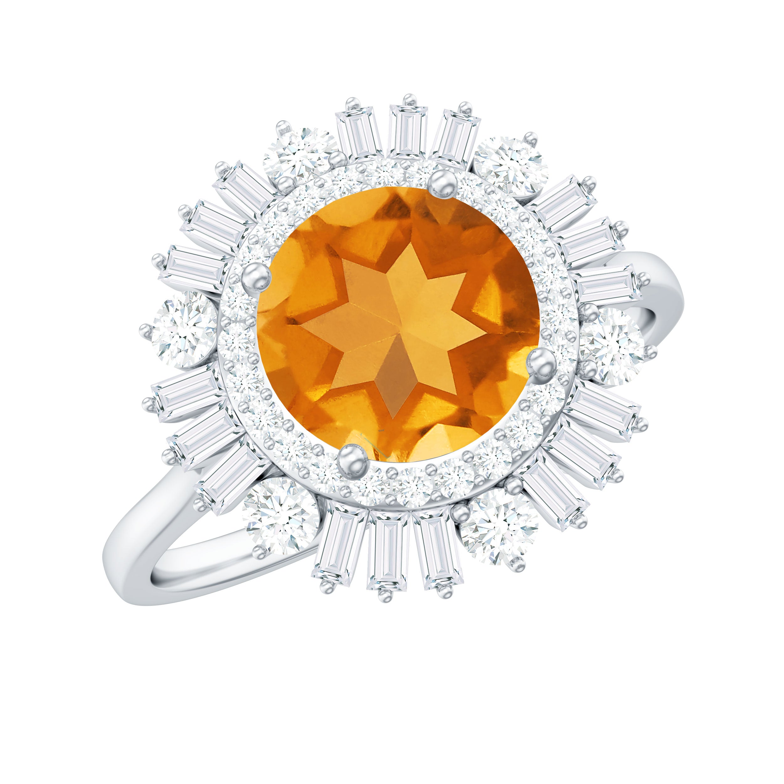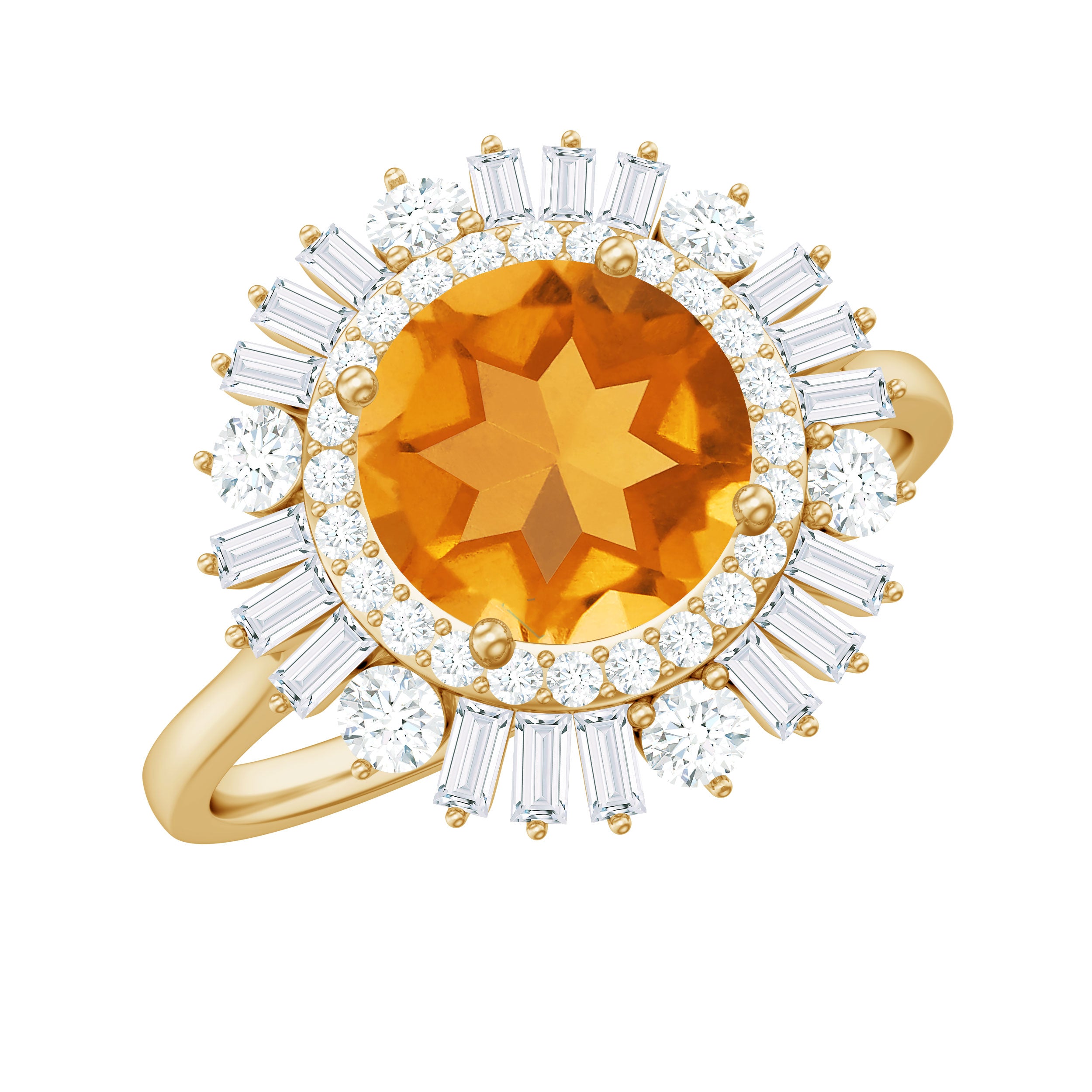 2 CT Round Citrine Cocktail Ring with Moissanite Double Halo