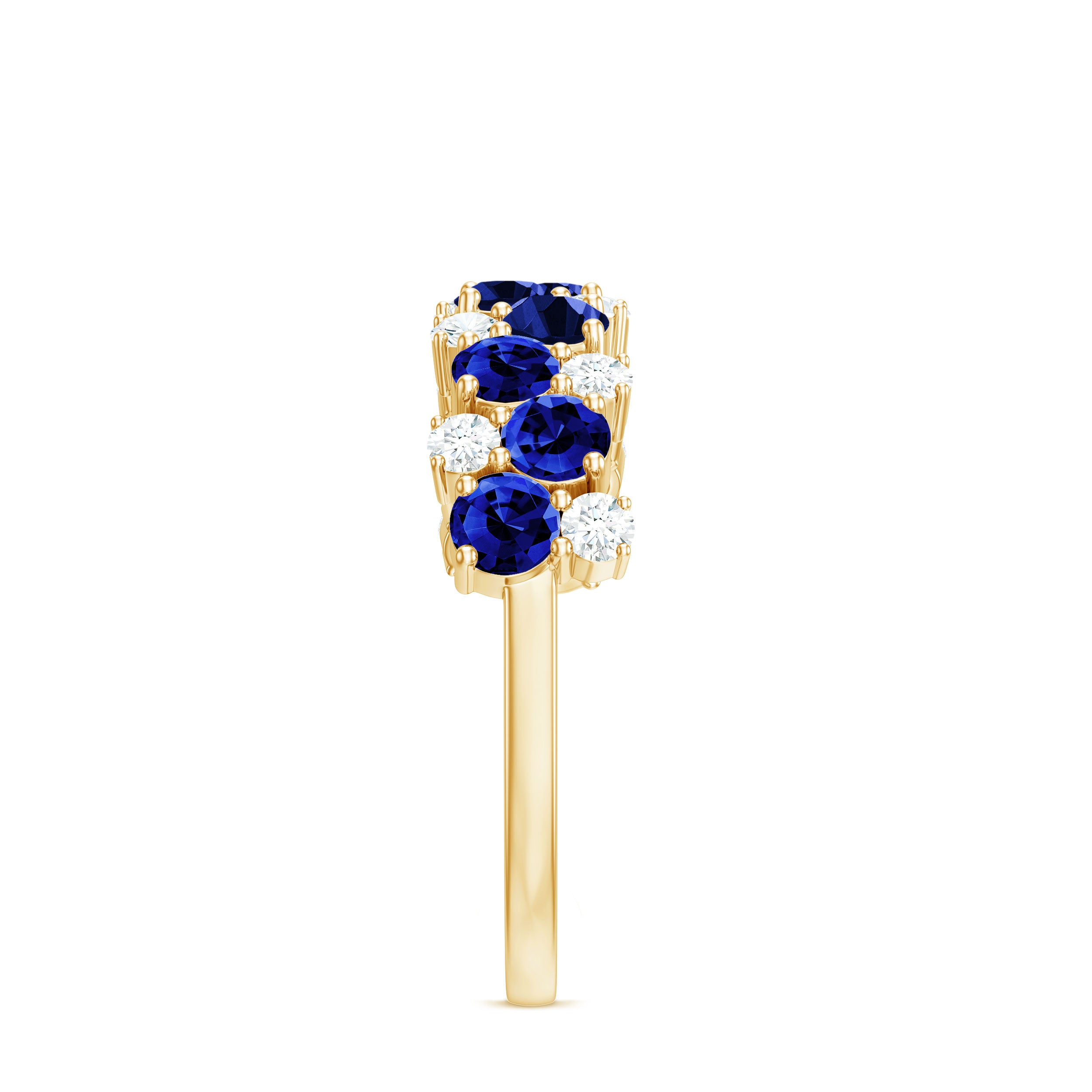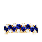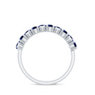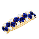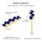 This half eternity ring features a cluster of sparkling round created blue sapphire and moissanite set in a prong setting, creating a stunning and eye-catching look. The half eternity design of the ring means that the gems run continuously around the band, adding extra sparkle to the piece. Whether worn alone or stacked with other bands, this cluster band ring is the perfect choice for anyone looking for a timeless and stylish accessory.