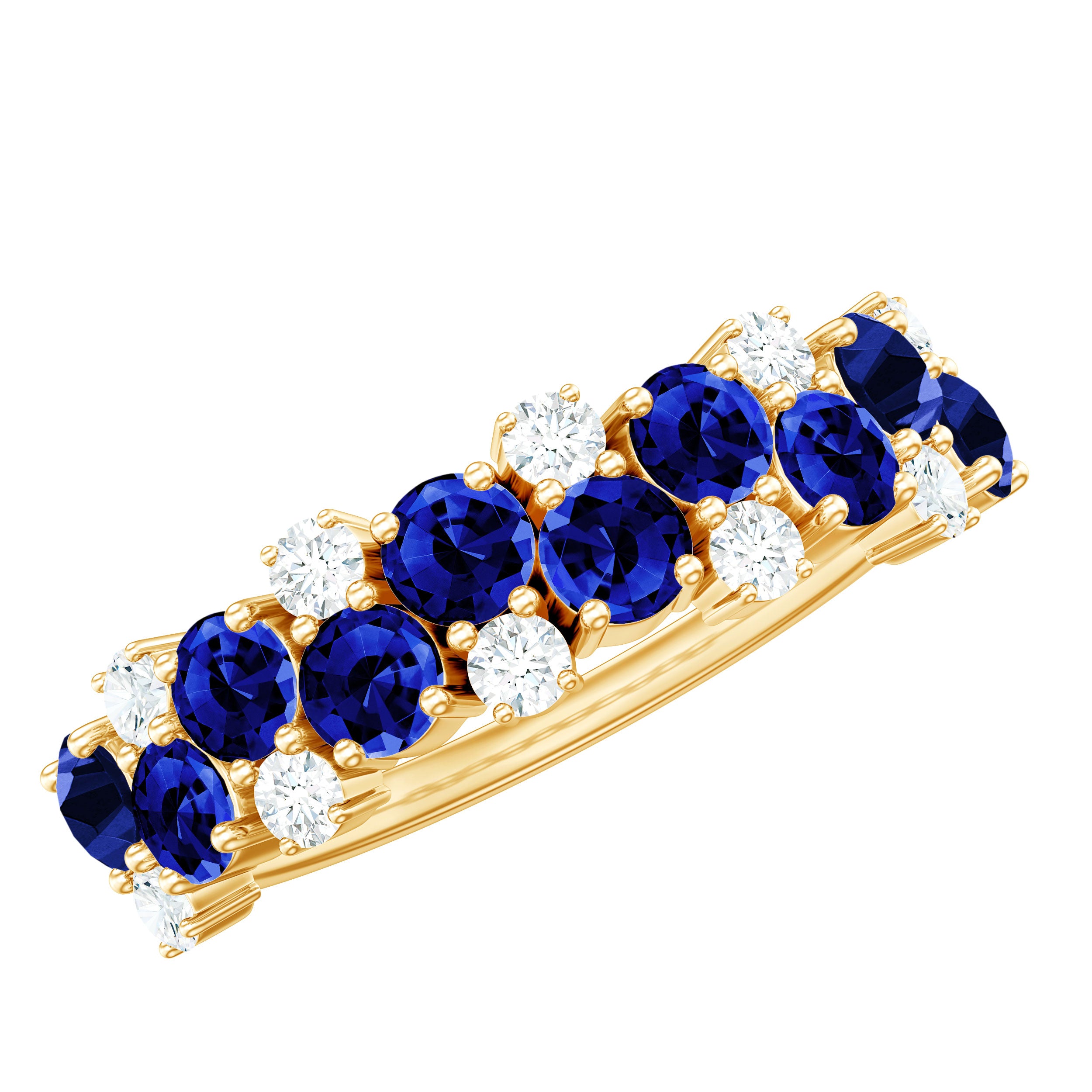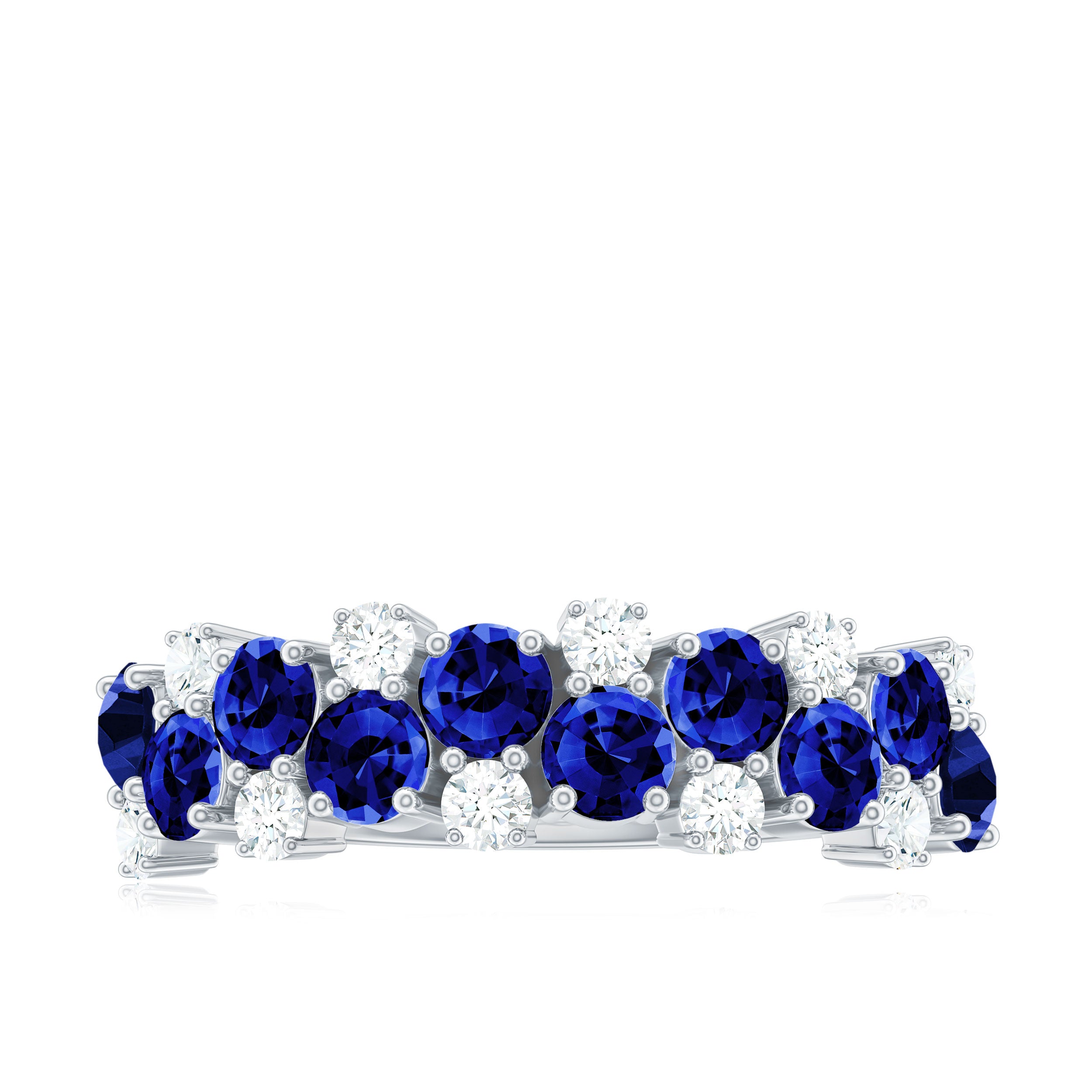 2 CT Round Created Blue Sapphire and Moissanite Cluster Half Eternity Ring
