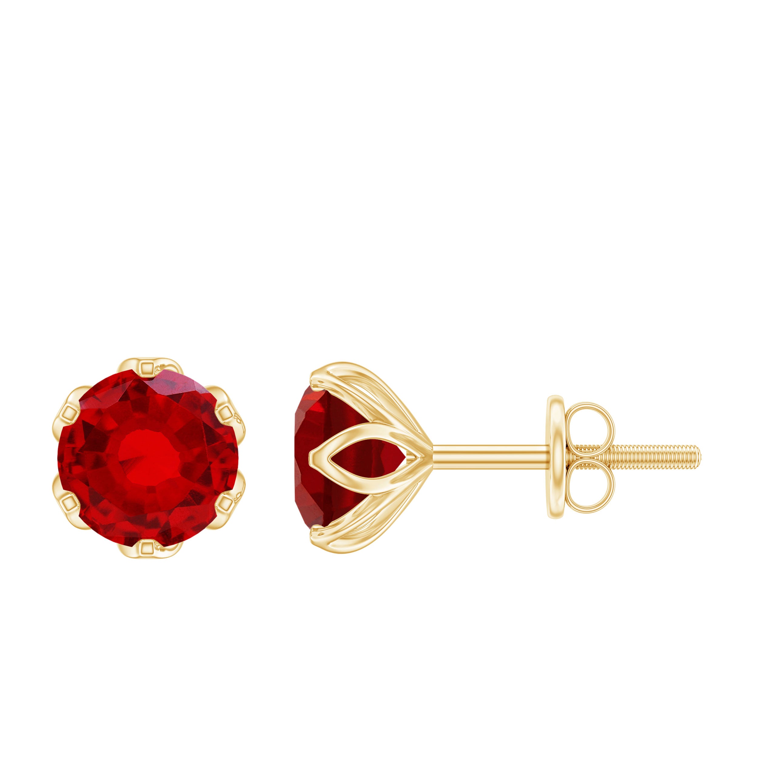 Grace yourself with this beautiful pair of Solitaire Stud Earrings embellished with sparkling Lab Created Ruby Solitaire set in Lotus Basket Setting and appears as flower. Solid Gold composed Lab Created Ruby Earrings will steal the spotlight for you in the parties and celebrations.