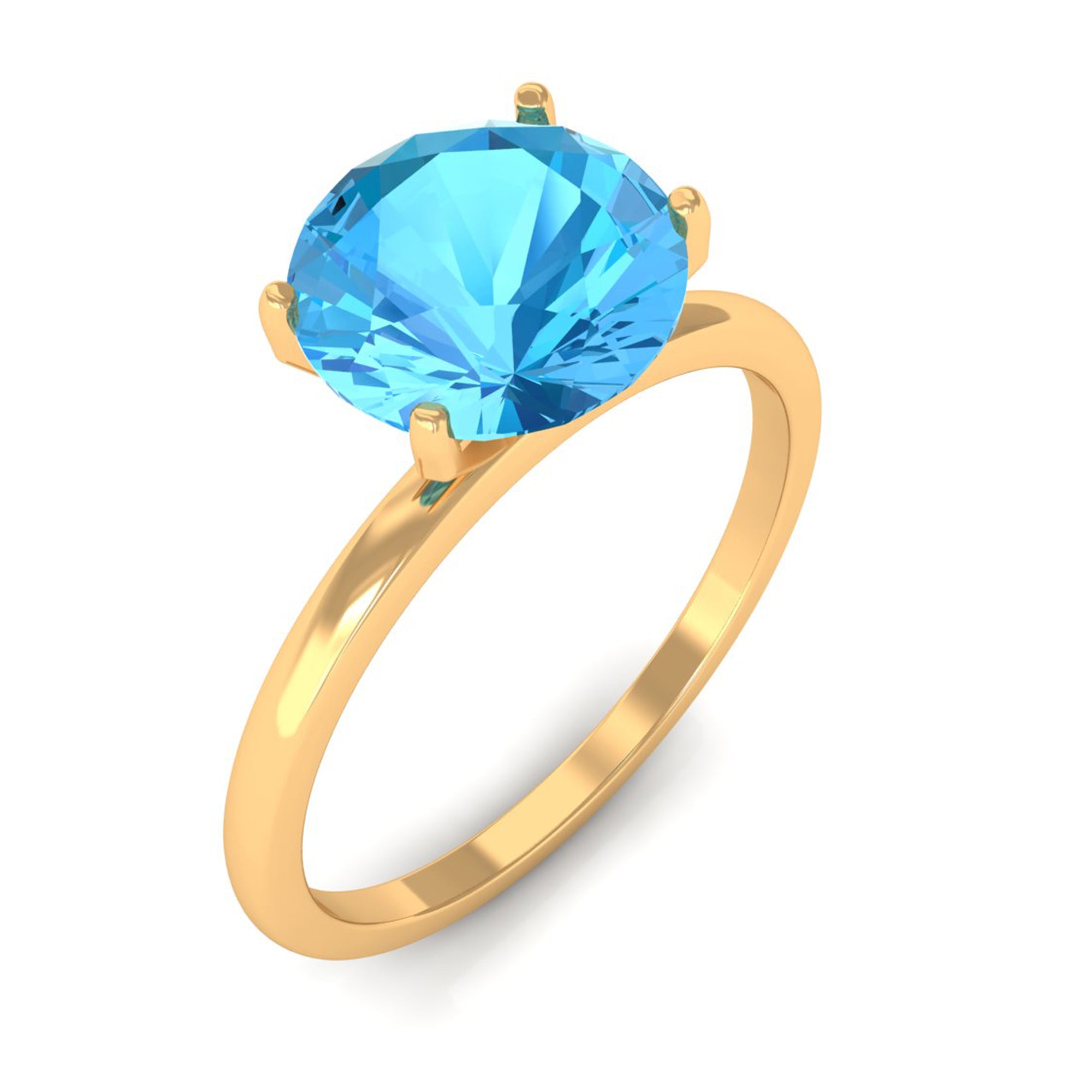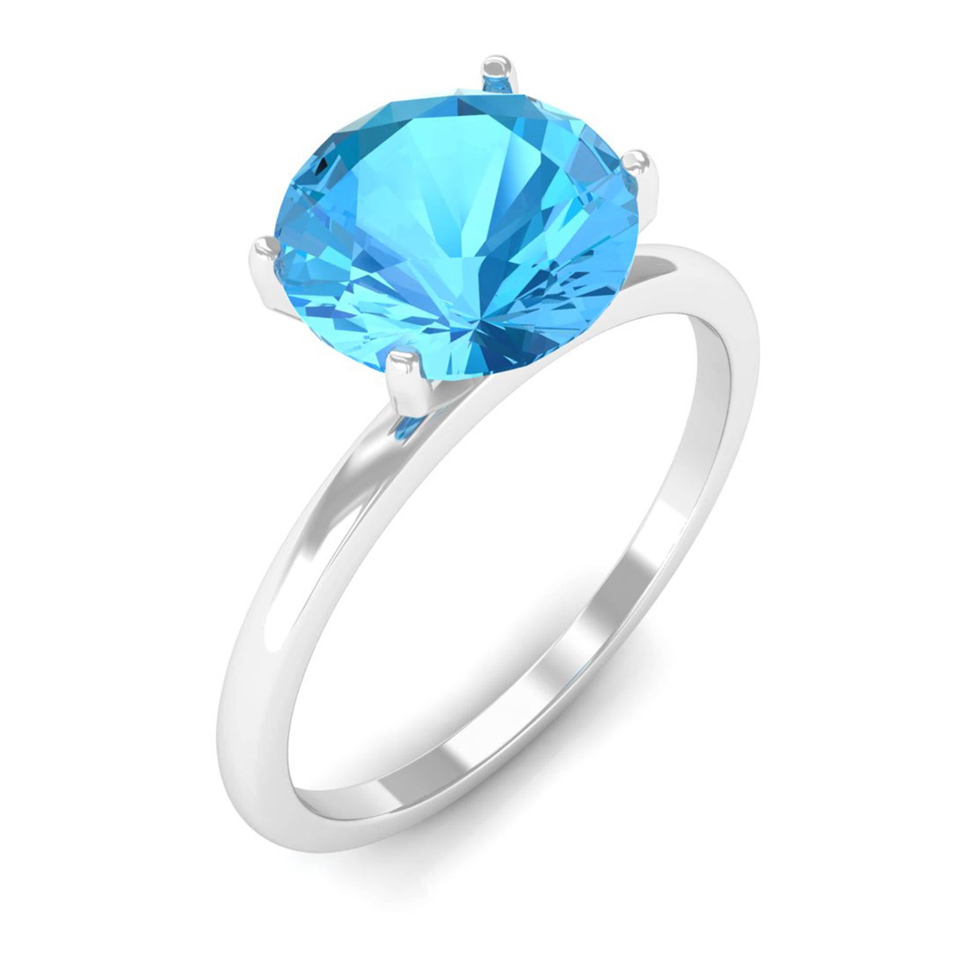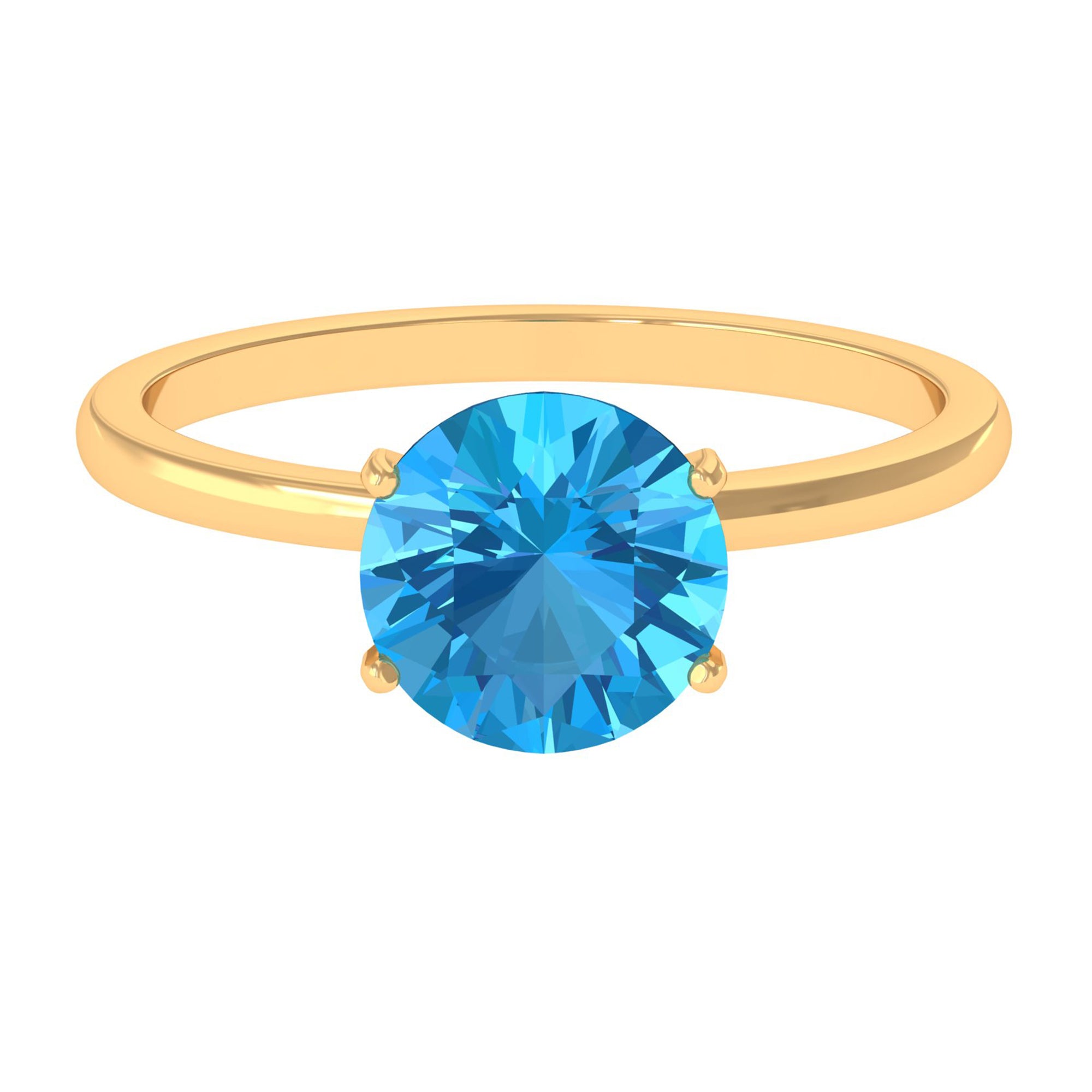 This elegant Simple Solitaire Ring for women features an 8 MM round cut Swiss blue topaz in a peg head setting, creating a stunning solitaire design. The Swiss blue topaz is the centerpiece of this exquisite piece, making it an exotic addition to any womans collection.