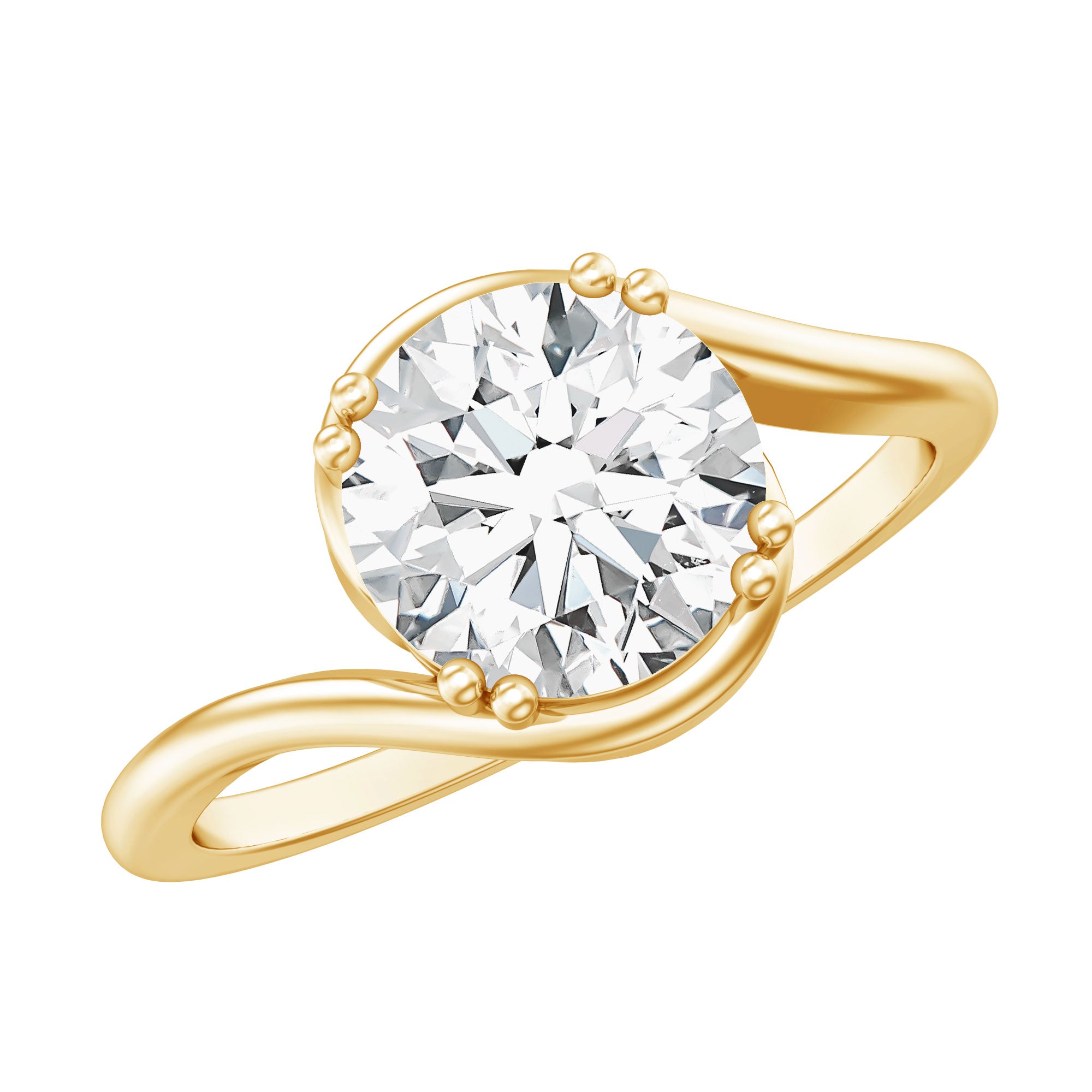 Bypass Engagement Ring is embellished with Round Solitaire Moissanite, held in Double Prong Setting for enchanting appeal. This Moissanite Engagement Ring is a timeless piece of fine jewelry. Get this Solitaire Engagement Ring for your lady express how much you love her.